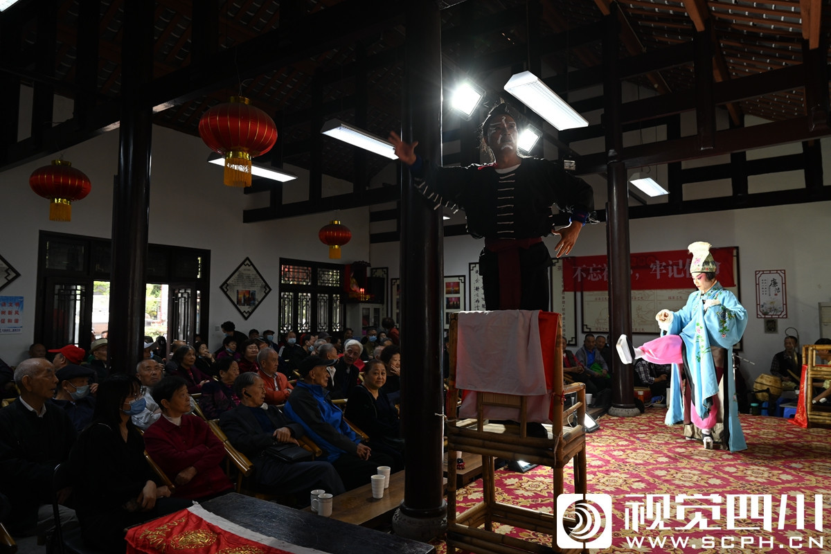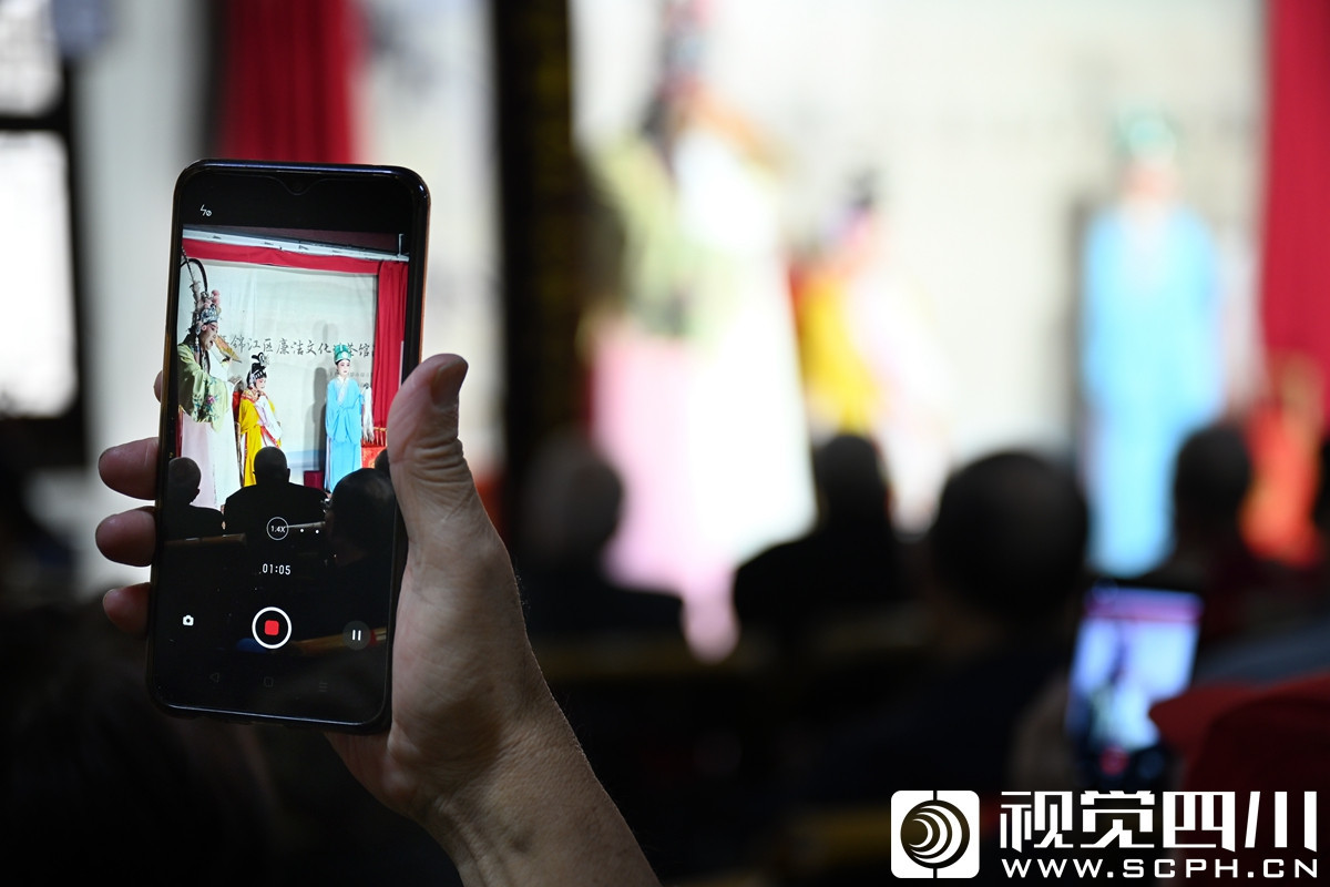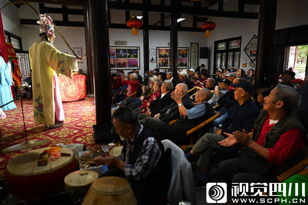 这里每天都会上演不同的剧目,川剧大师蓝光临的关门弟子彭小龙携夫人蒋琼在国庆期间也来这里献艺,精湛的唱腔赢得满堂彩。