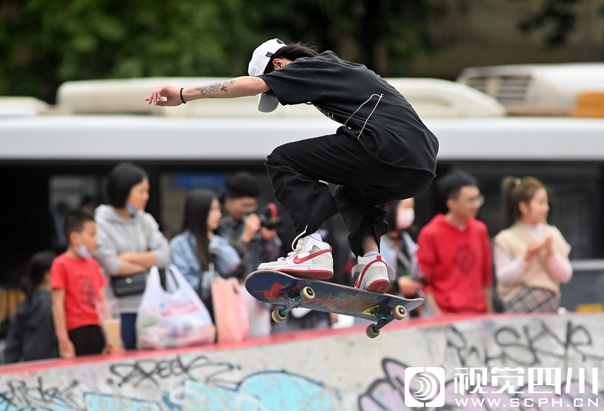 一墙之隔,就是成都人时尚潮流据点国际青年社区,玩兴正酣的滑板少年身着嘻哈、朋克的衣服,踩着滑板在各种斜坡、栏杆上,帅气的跳跃、滑行、转体。一旁,咖啡馆、甜品店、杂货铺、电竞馆、专卖店……应有尽有,熙熙攘攘的人群早已融入到这生机勃勃的城市生活中。