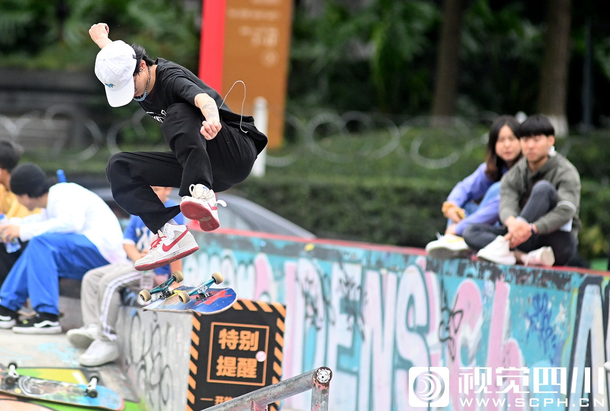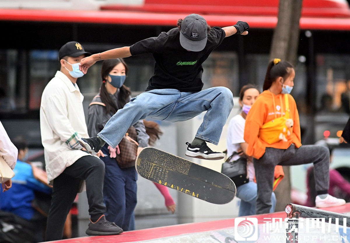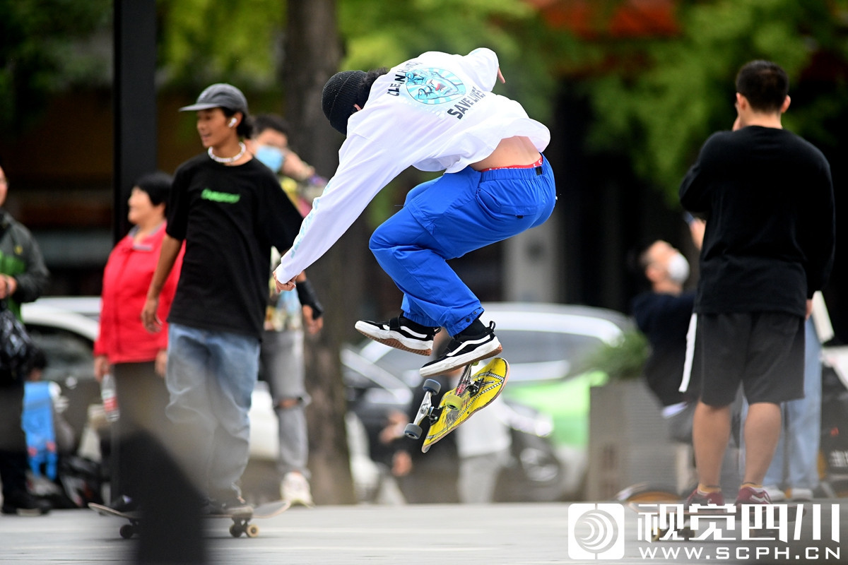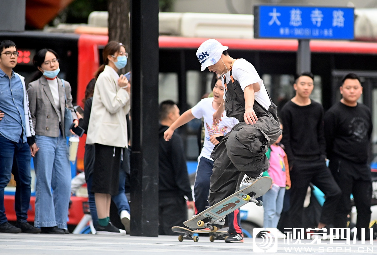 10月4日,成都大慈寺国际青年社区里的滑板少年