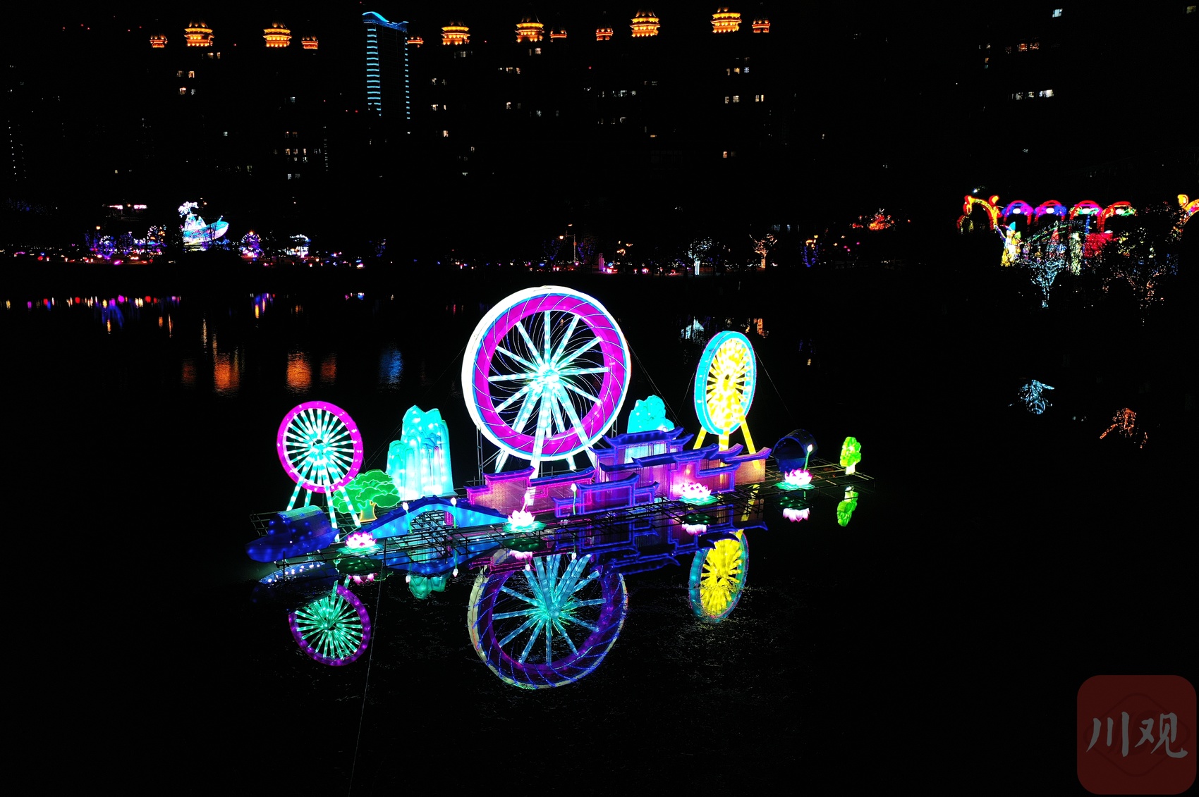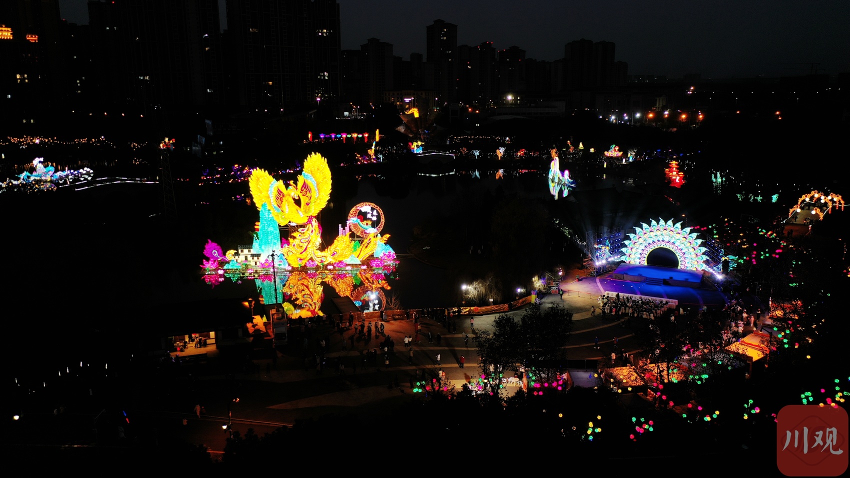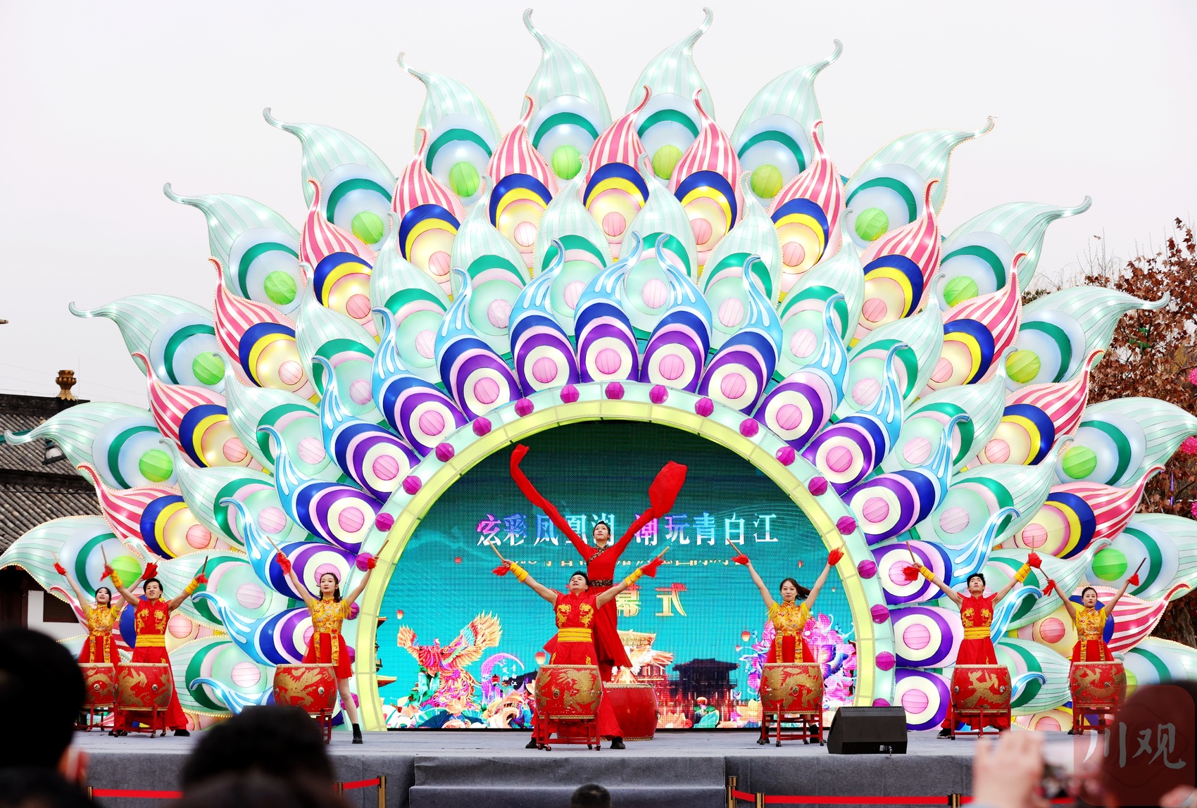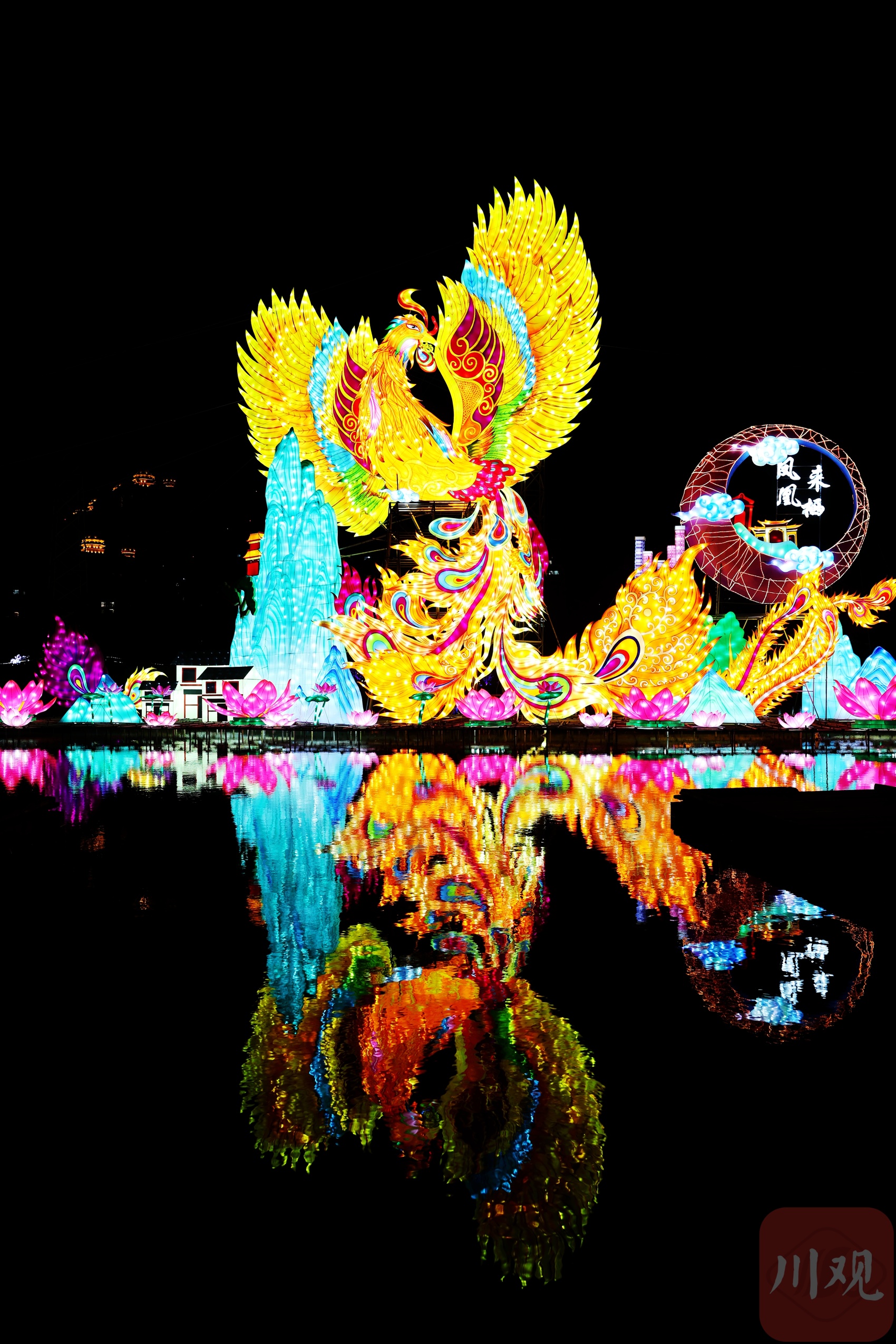 2023年1月14日晚,成都青白江首届凤凰湖国际灯会正式亮灯。本届国际灯会占地400亩,有数万组灯光装饰、40多个大型特色灯组。其中《凤凰来栖》灯组长40米,高20.23米。该灯组以凤舞九天造型为主题灯景,整体色彩丰富绚丽,气势恢宏。