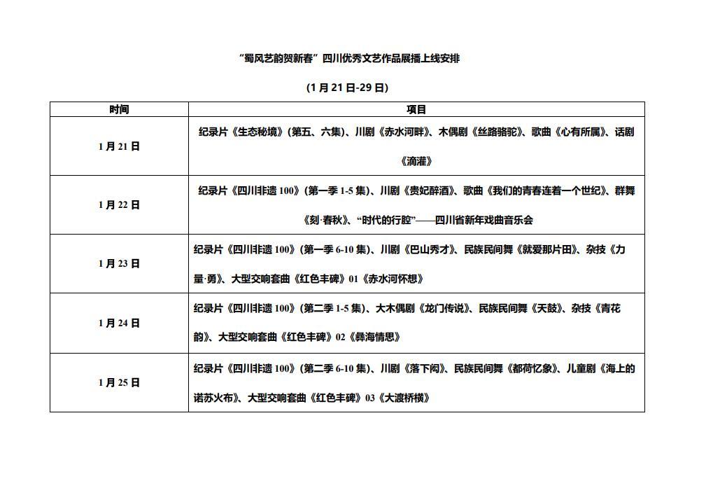 1月18日,“蜀风艺韵贺新春”四川优秀文艺作品展播又更新了一批新节目,为你精选高品质大片,陪你温暖过个文化年!
