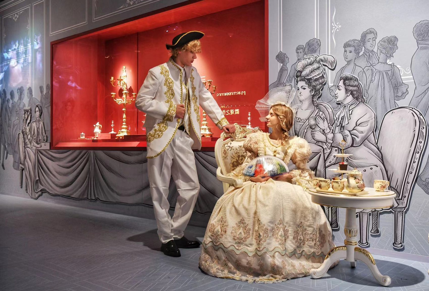 此次巡展是吉尔伯特夫妇收藏精品首次在国际巡展中公开亮相。见证中英两国文化往来的中国风丝绸晚礼服、银质茶叶罐和多层饰盘,采用日本传统髹漆技术制作的鼻烟盒,将东南亚椰壳、海螺壳和欧洲金银器工艺结合的杯盏,深受罗马影响的俄国微型马赛克工艺品……各种来自世界各地的珍贵材料、工艺和产品,折射出当时欧洲社会的生活风貌,也承载了世界文明交流的华彩篇章。