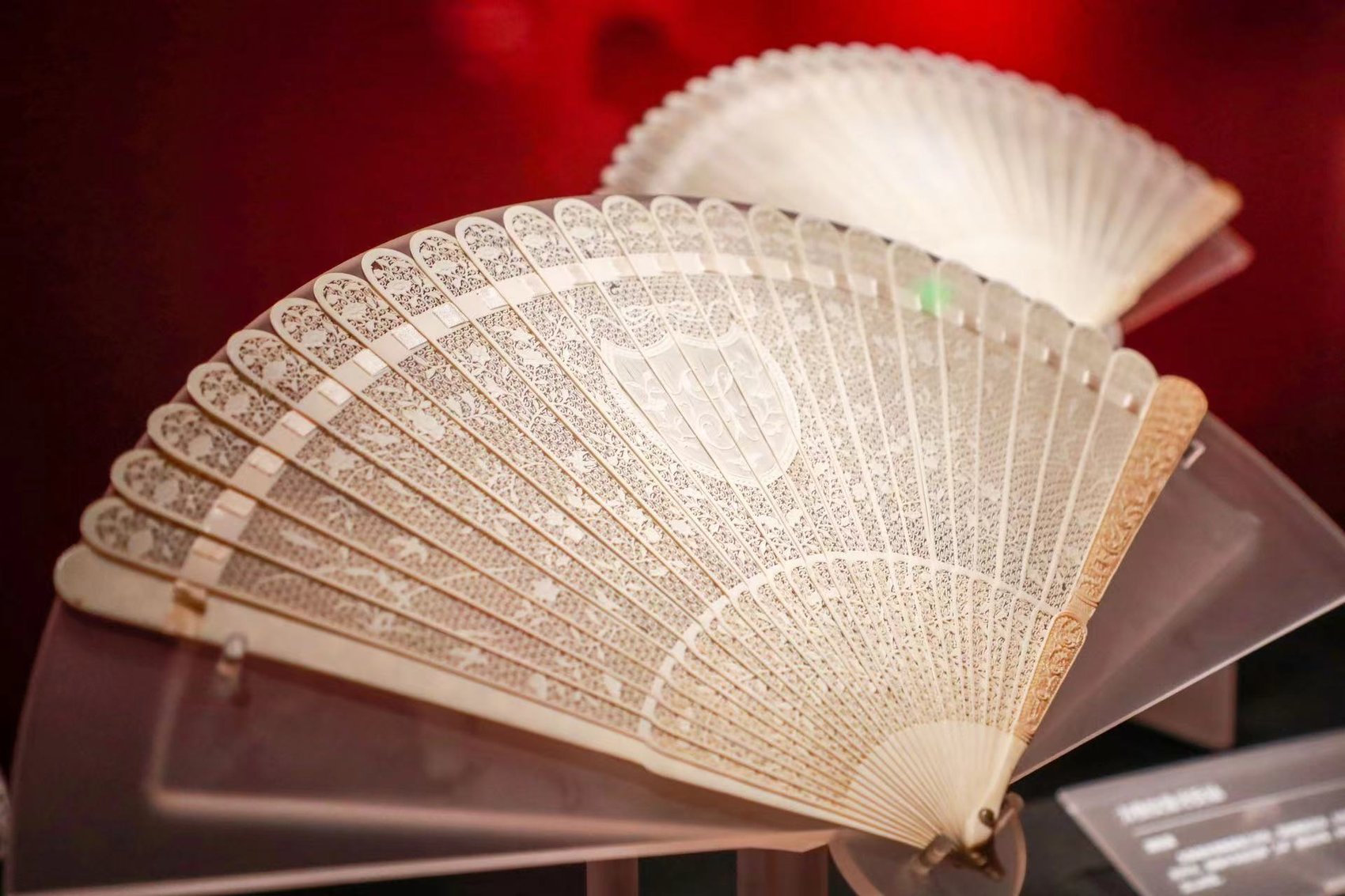 成都博物馆“广府外销扇:18-19世纪的中国风尚”展展出的花草纹象牙折扇 (成都博物馆供图)