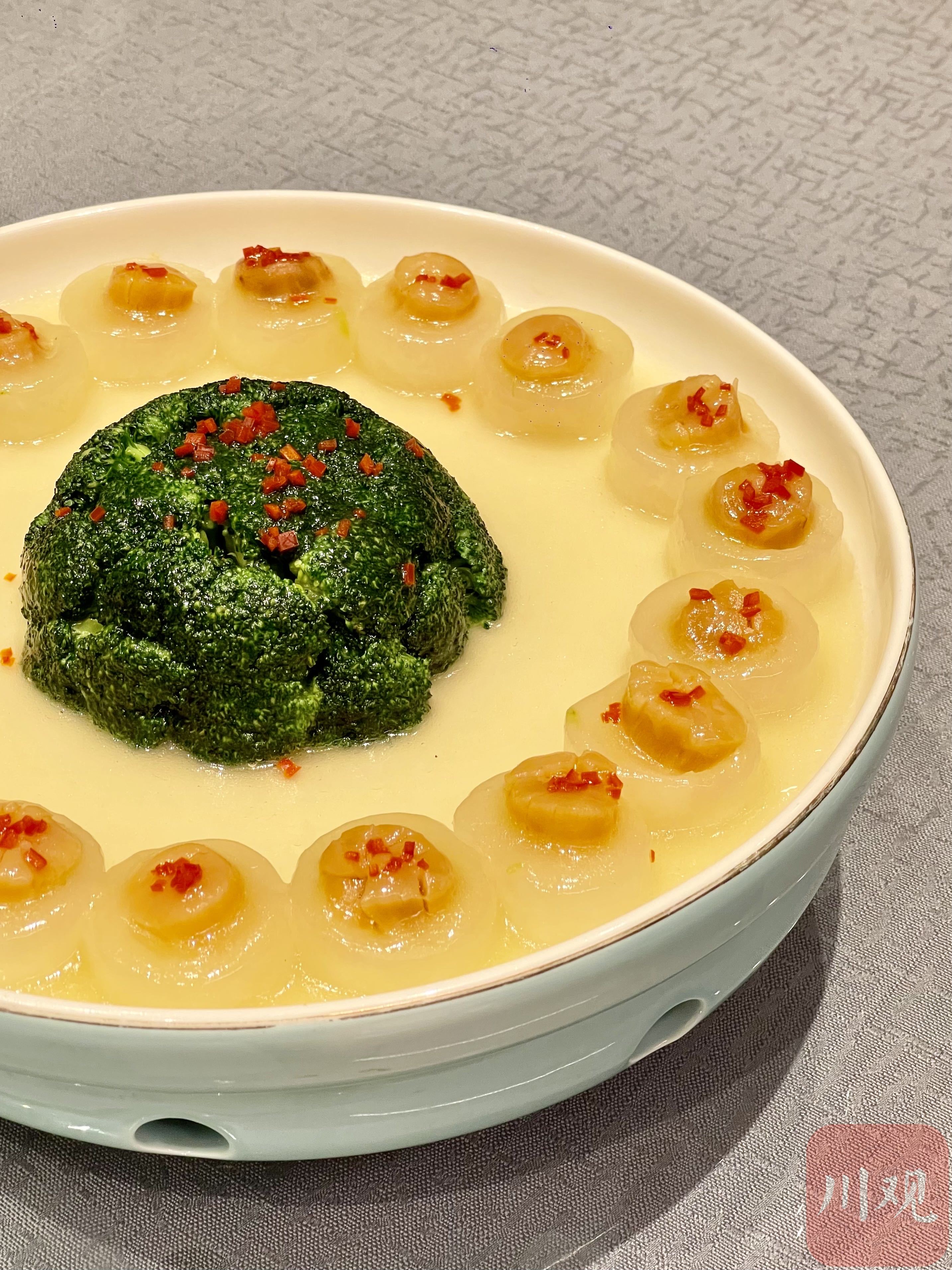 玥轩中餐厅推出寓意“金玉满堂”的经典粤菜“玉环瑶柱脯”。川观新闻记者 赵泽宇 摄