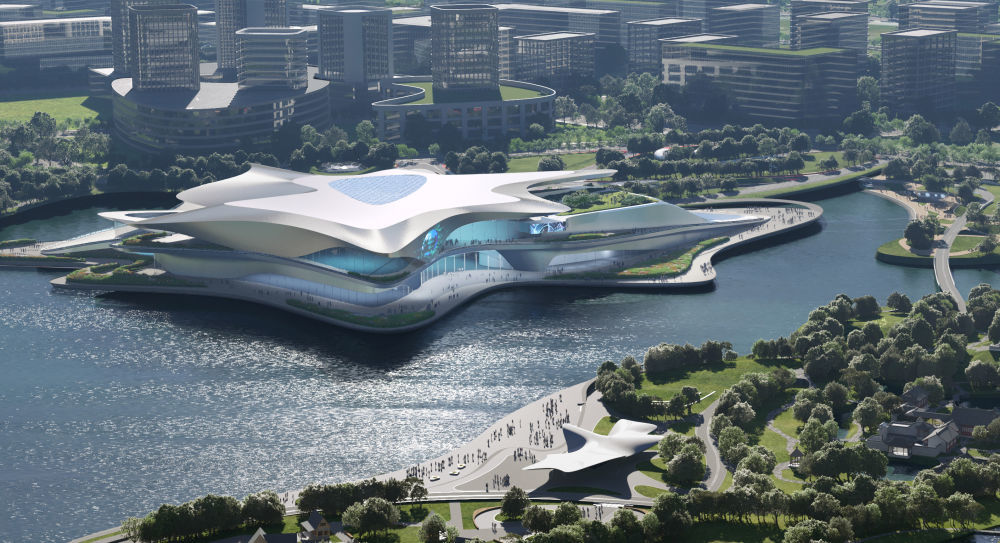 从规划效果图上看,“星云状”的成都科幻馆屹立于菁蓉湖畔,振翅欲飞。郫都区科创新城管委会副主任刘旭介绍说,作为成都市未来又一地标建筑,建筑外形提取“金沙”和“三星堆”最具代表性的文化概念元素,采用蜂窝铝板和玻璃幕墙,通过铝板金属光泽和玻璃的通透,充分展现建筑的科技感与未来感。