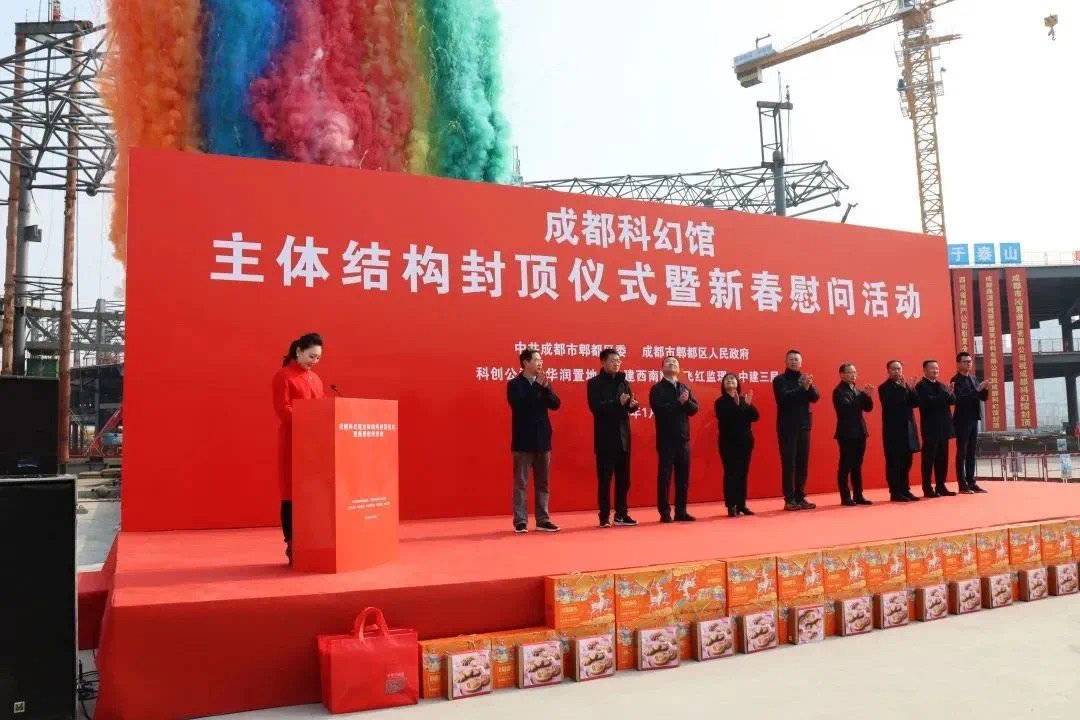 1月20日,第81届世界科幻大会主场馆——成都科幻馆主体结构封顶仪式在郫都区菁蓉湖畔举行。自2022年8月开工以来,通过各参建单位近半年时间的奋战拼搏,成都科幻馆主体结构正式宣告封顶。