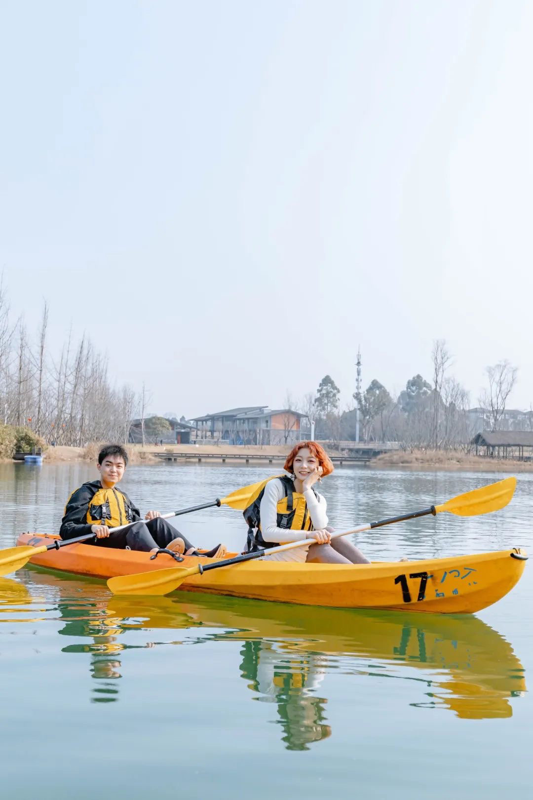 市民正泛舟锦城湖上。