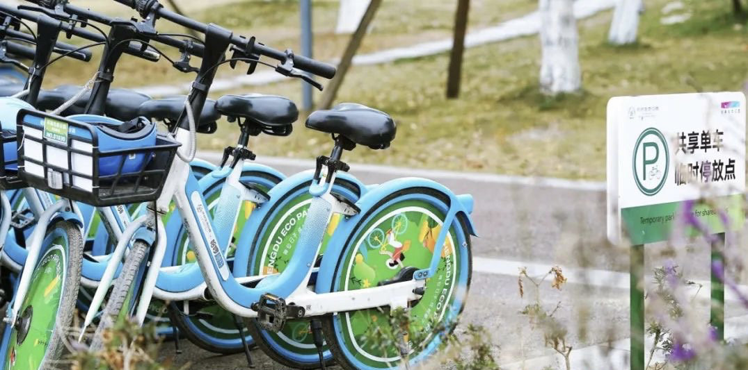 公园里停放的共享单车。