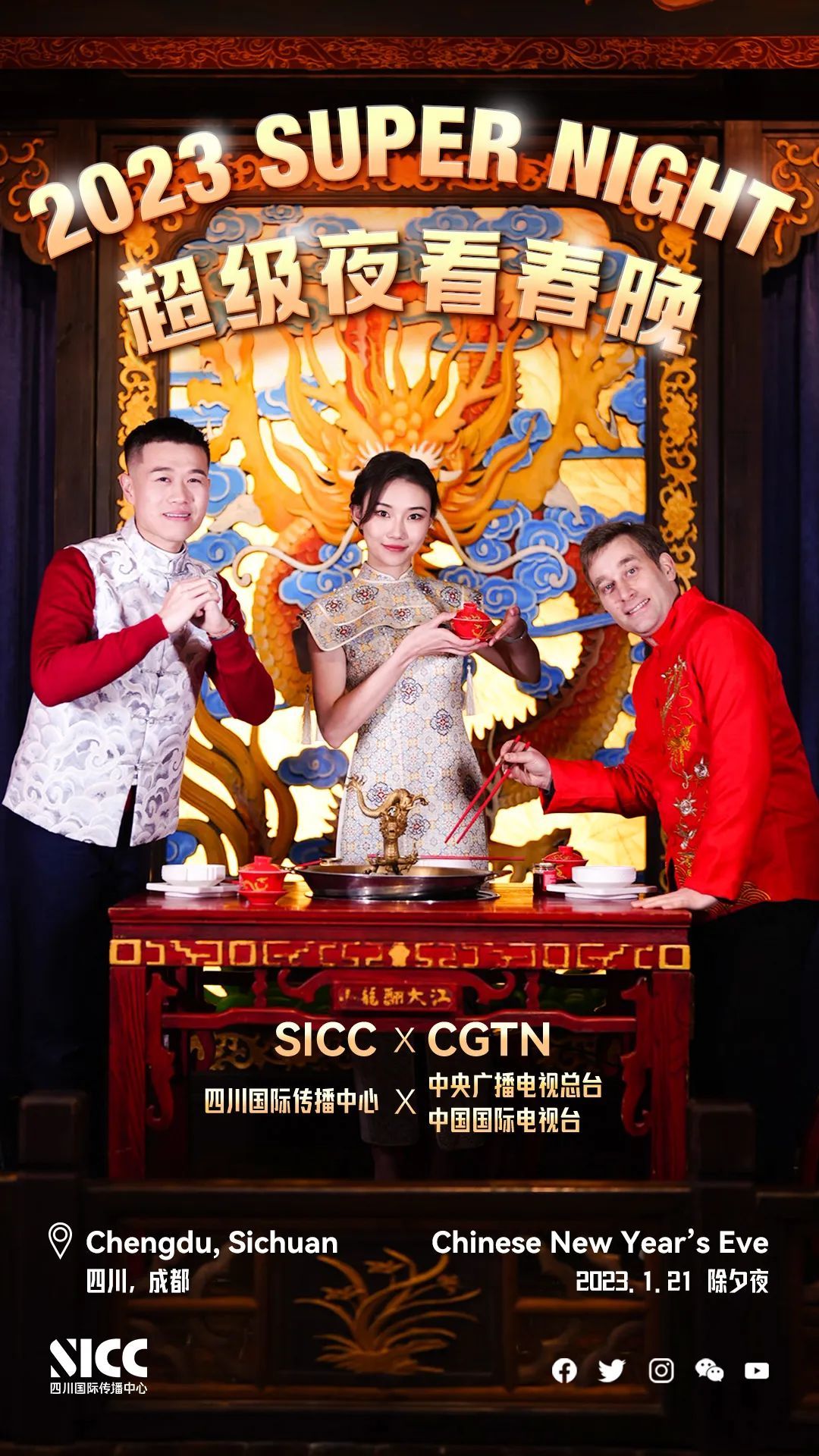On New Year's Eve, the unique program of the CGTN 2023 Spring Festival Gala, "CGTN Super Night," was held in Chengdu. Reporter Xu Xinchen from CGTN, foreign guest Zima, and host Zhao Yuqi from Sichuan International Communication Center(SICC) gathered around the stove, talked about hot pot culture and Sichuan-Chongqing culture, introducing Sichuan to the world.