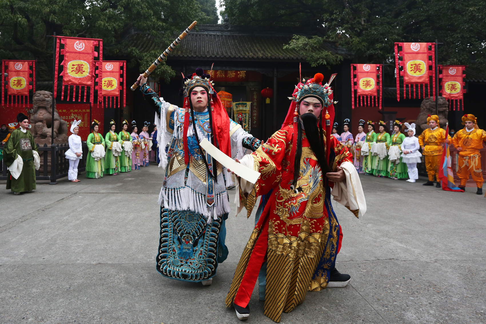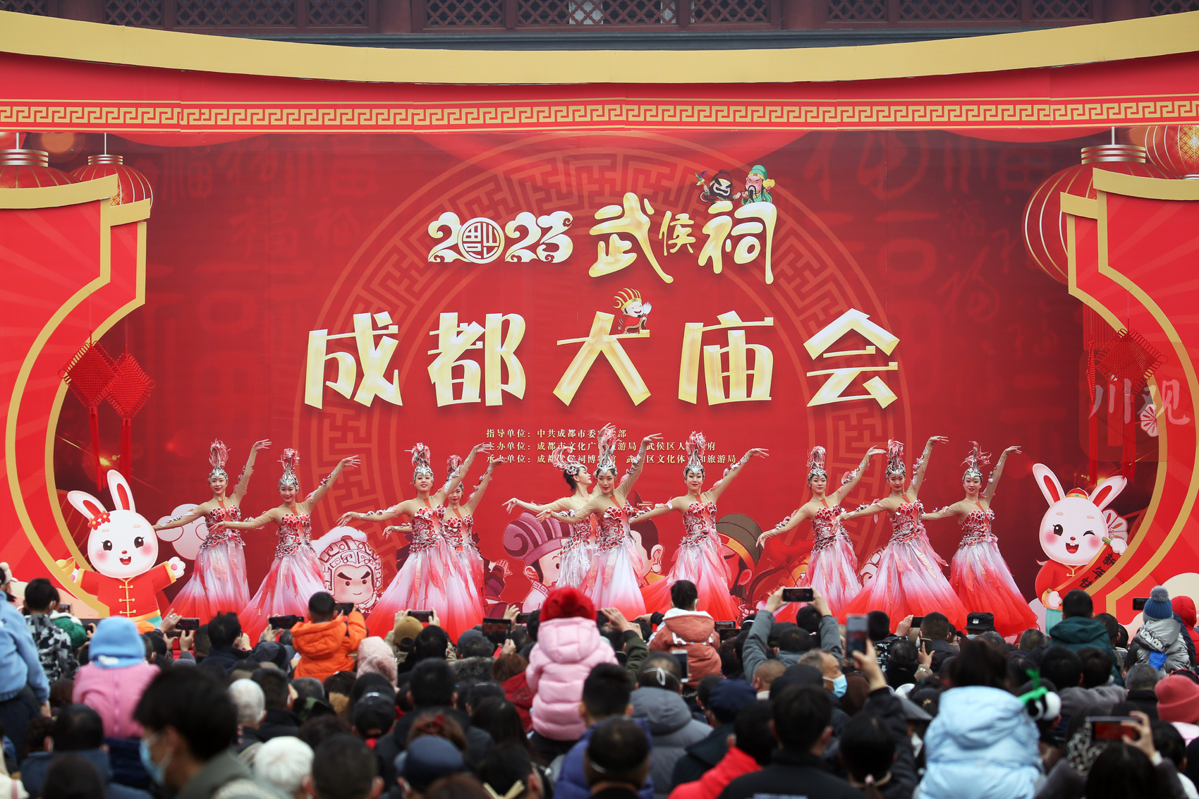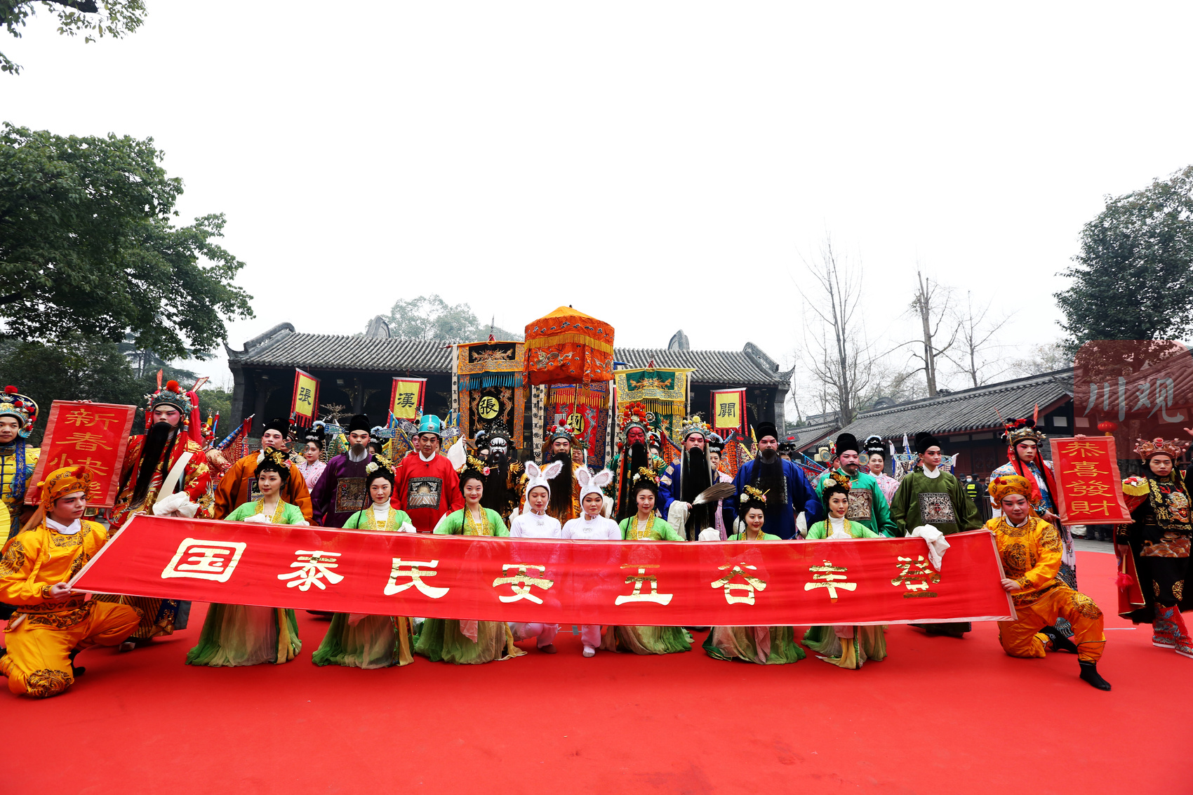 出南门,游喜神方,博物馆里过大年。1月22日,大年初一,武侯祠成都大庙会期间的重头戏“游喜神方”、“仿古祭祀”活动,在武侯祠博物馆文物区前热闹开场。