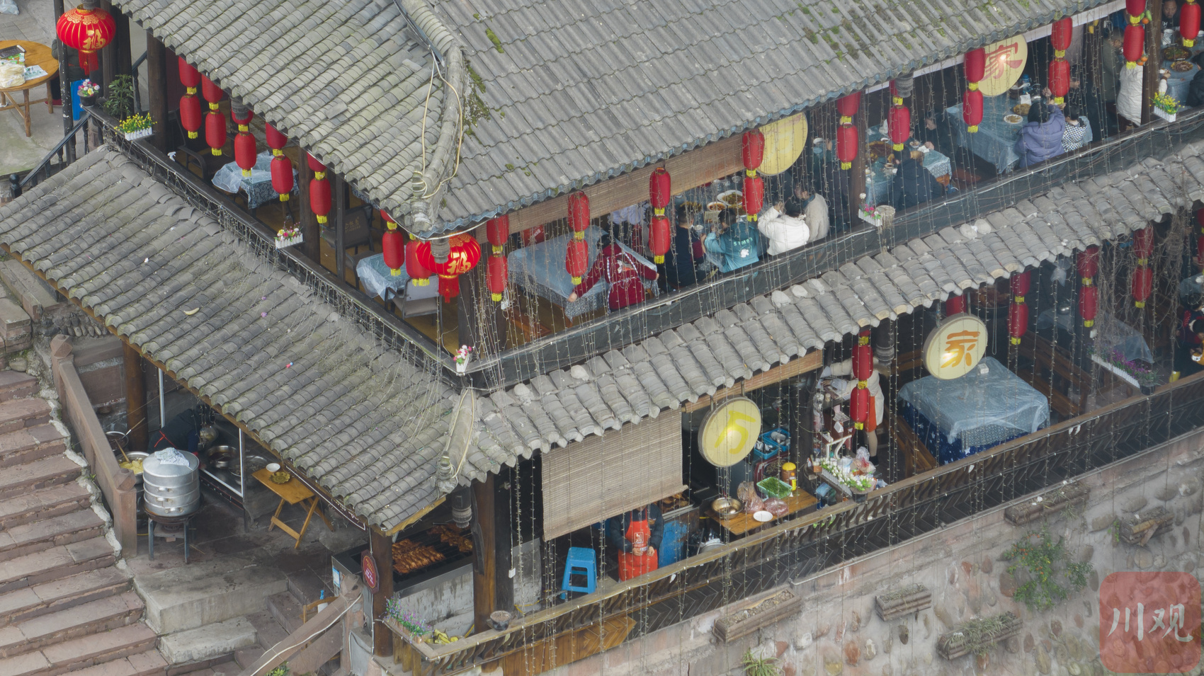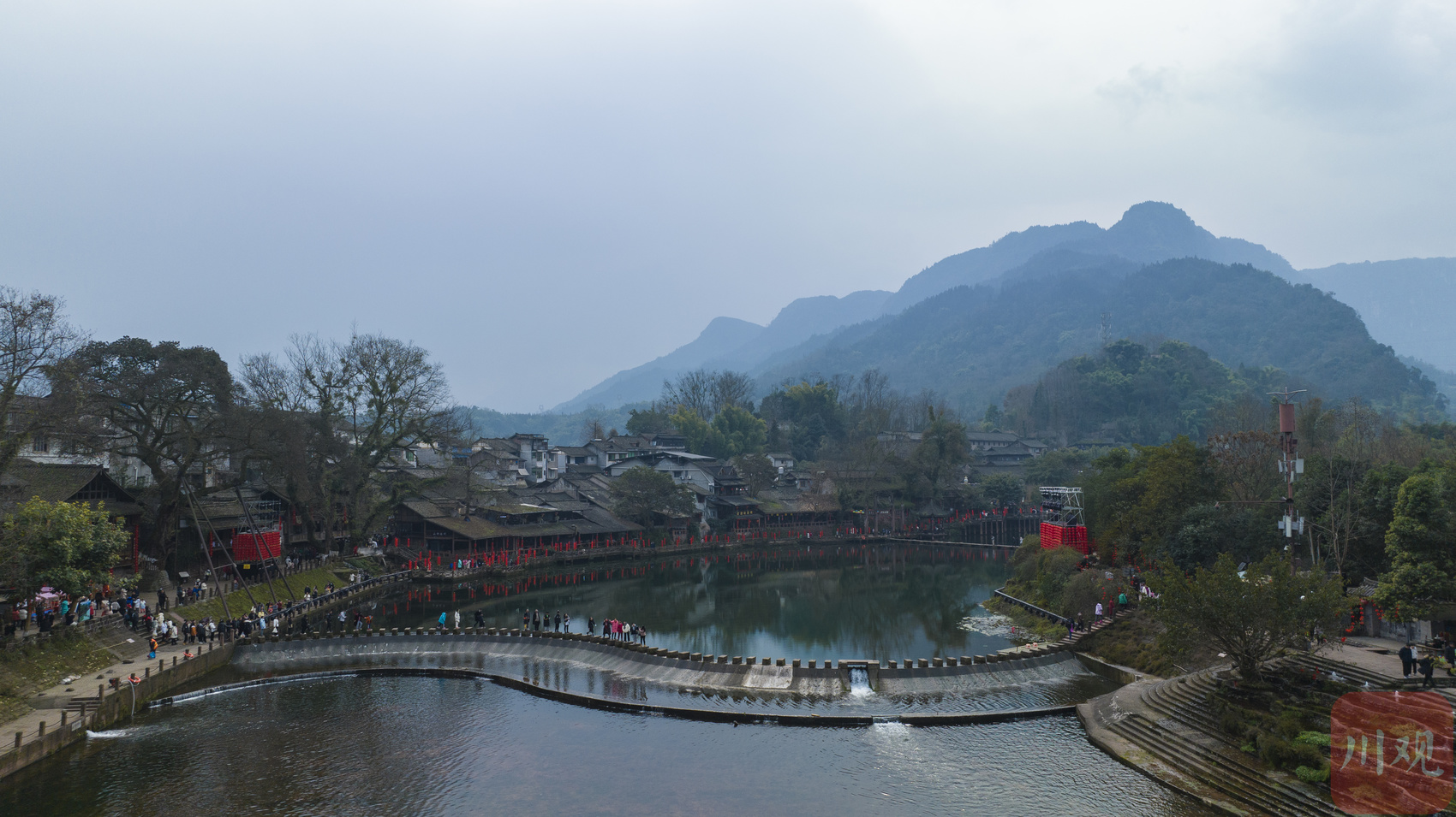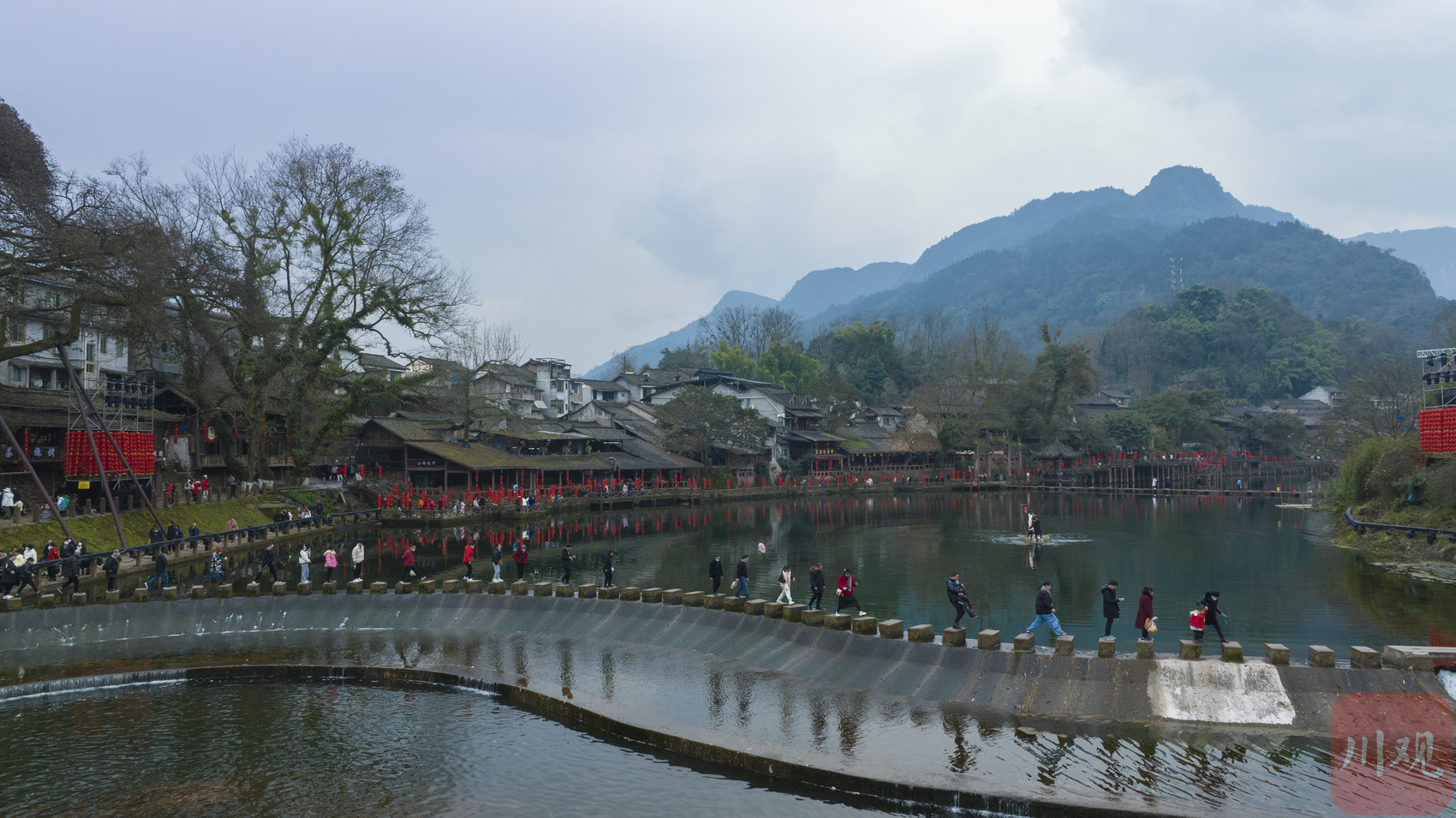 1月23日,眉山市洪雅县柳江古镇热闹非凡。碧绿的江水映照着年味十足的古镇,如同一幅江南水乡般的泼墨山水画。穿行在小镇上的游人与高高挂起的红灯笼,尽显浓浓的古镇年味。