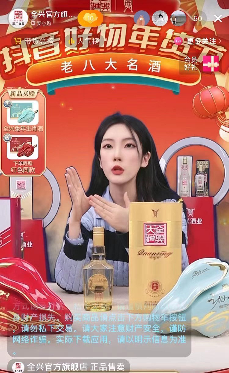 “最近是抖音好物年货节,一周六天都在直播,要过节了也是白酒销售的高峰,我下播都是深夜了。”陈韵月虽然才23岁,但已从事电商行业多年。今年是她从幕后策划转型为直播间主播的第二年。“做了主播之后,我发现我非常喜欢这个行业,新的一年我也给自己定了个目标,好好学习酒文化酒知识,希望今年能和更多的大品牌合作。”