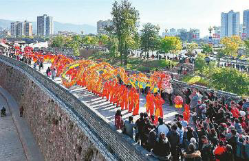春节期间,各地游客走进有着600余年历史的西昌市建昌古城,在丰富多彩、亮点纷呈的活动中,感受热闹喜庆的节日气氛。这也是建昌古城修缮后,开门迎客的第一个重要节庆活动。李小平 摄(视觉四川)