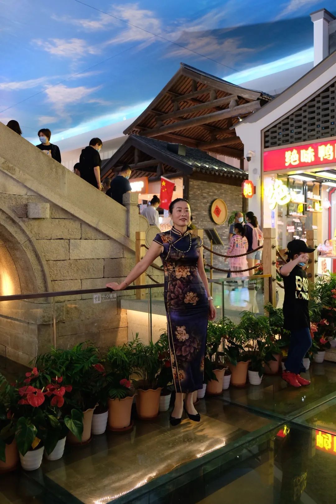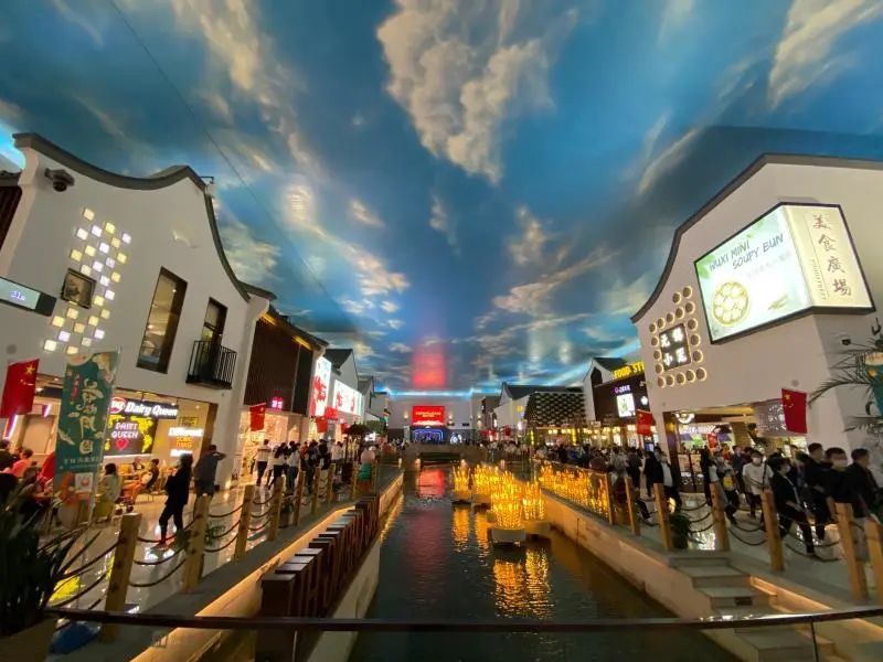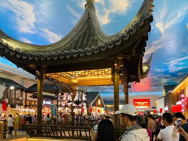 走进服务区,人流如织,屋顶人工天幕描绘蓝天白云,地上景观河道架设江南百年古桥,耳边悠悠昆曲萦绕,旅途的疲惫顿时消除了大半。