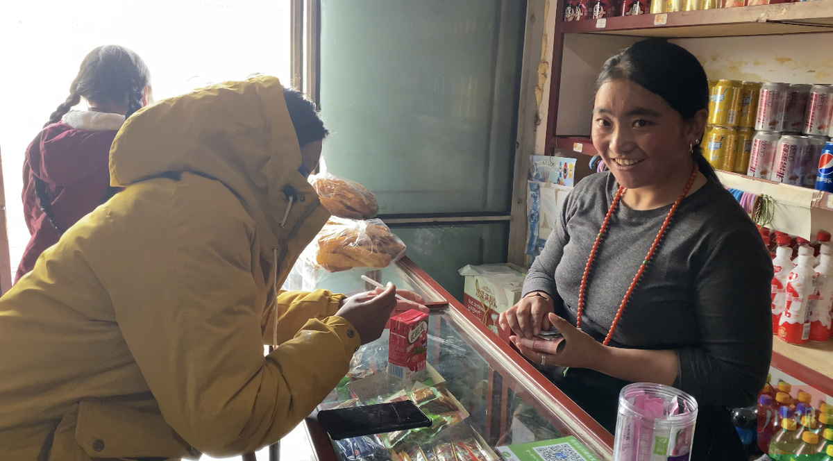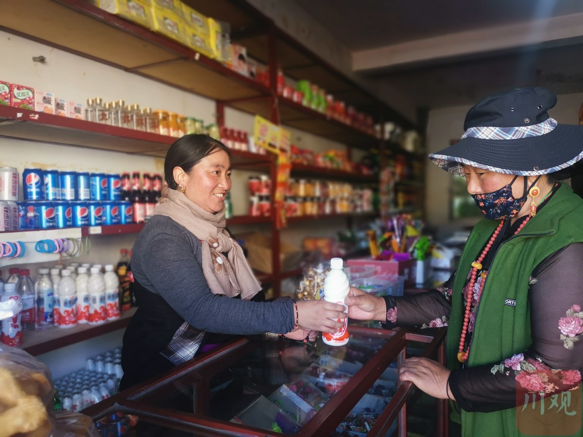 10月7日,迎着细雨,记者随红原县瓦切镇干部杨秀丽来到嘎雄商店,杨秀丽同店老板泽让杰拉起话:“最近生意咋样?快到年底评星,要确保5星荣誉。”