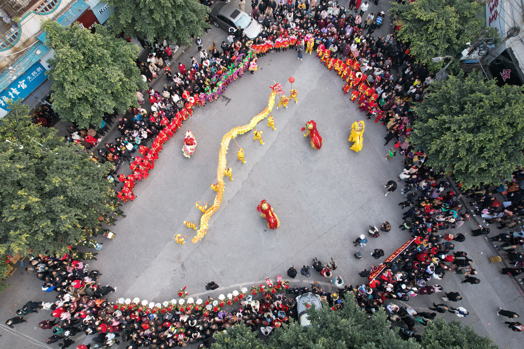 舞龙舞狮、敲腰鼓、摇花船、跳秧歌……1月28日下午,内江市东兴区椑木镇热闹非凡,送福队、舞狮队、女子龙灯队、腰鼓队、花船队、花环队、秧歌队、铜鼓队、军乐队依次沿街巡游,为当地居民送去祝福。