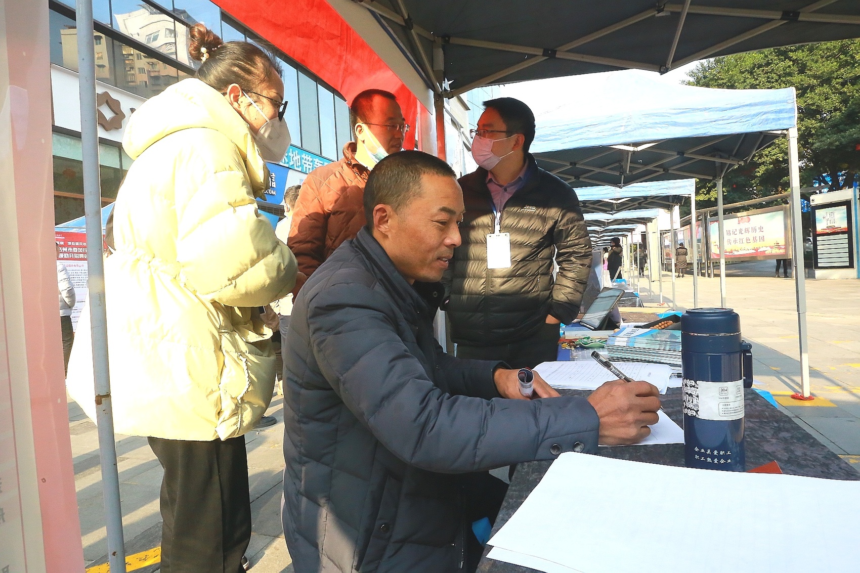 由于舟山与达州东西部劳务协作关系,不少企业已属多次来自达州招人。首次出省招工的浙江某新材料科技公司行政主管蒋静超诚意满满,认真对待每一名应聘者,散发公司宣传单,耐心解答群众疑惑。