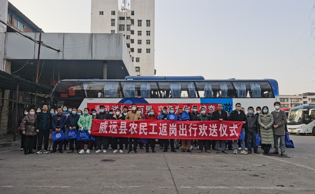 在客车出发前,威远县举行了简单的欢送仪式。“出门在外一定要注意安全,老乡之间要多联系、要互相帮助,在合适的时机可以回家创业就业,家乡的大门永远为你们敞开。”威远县人力资源社会保障局局长蒲丽梅表示。