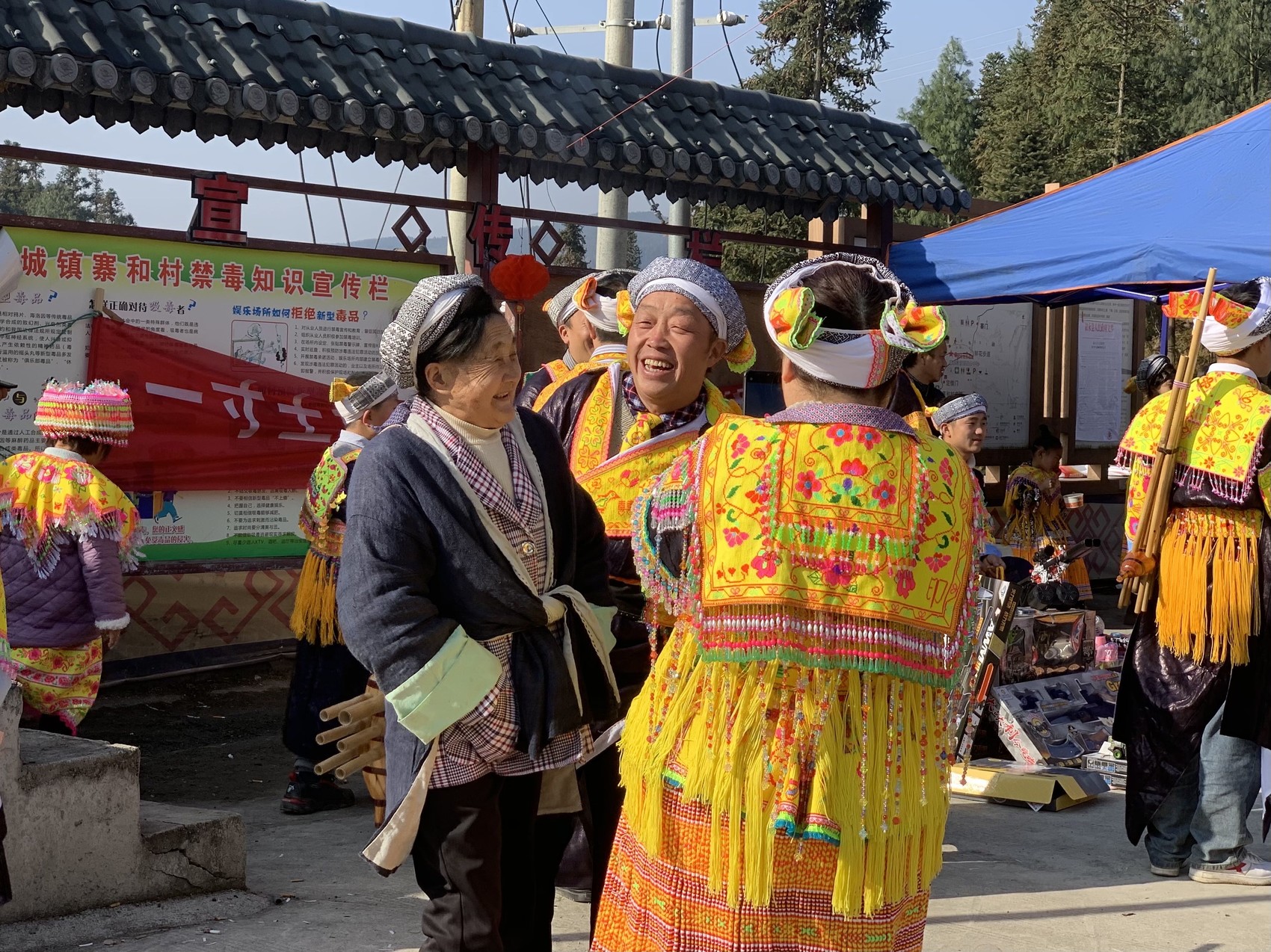 踩山节上,苗族同胞话家常。陈思璇摄