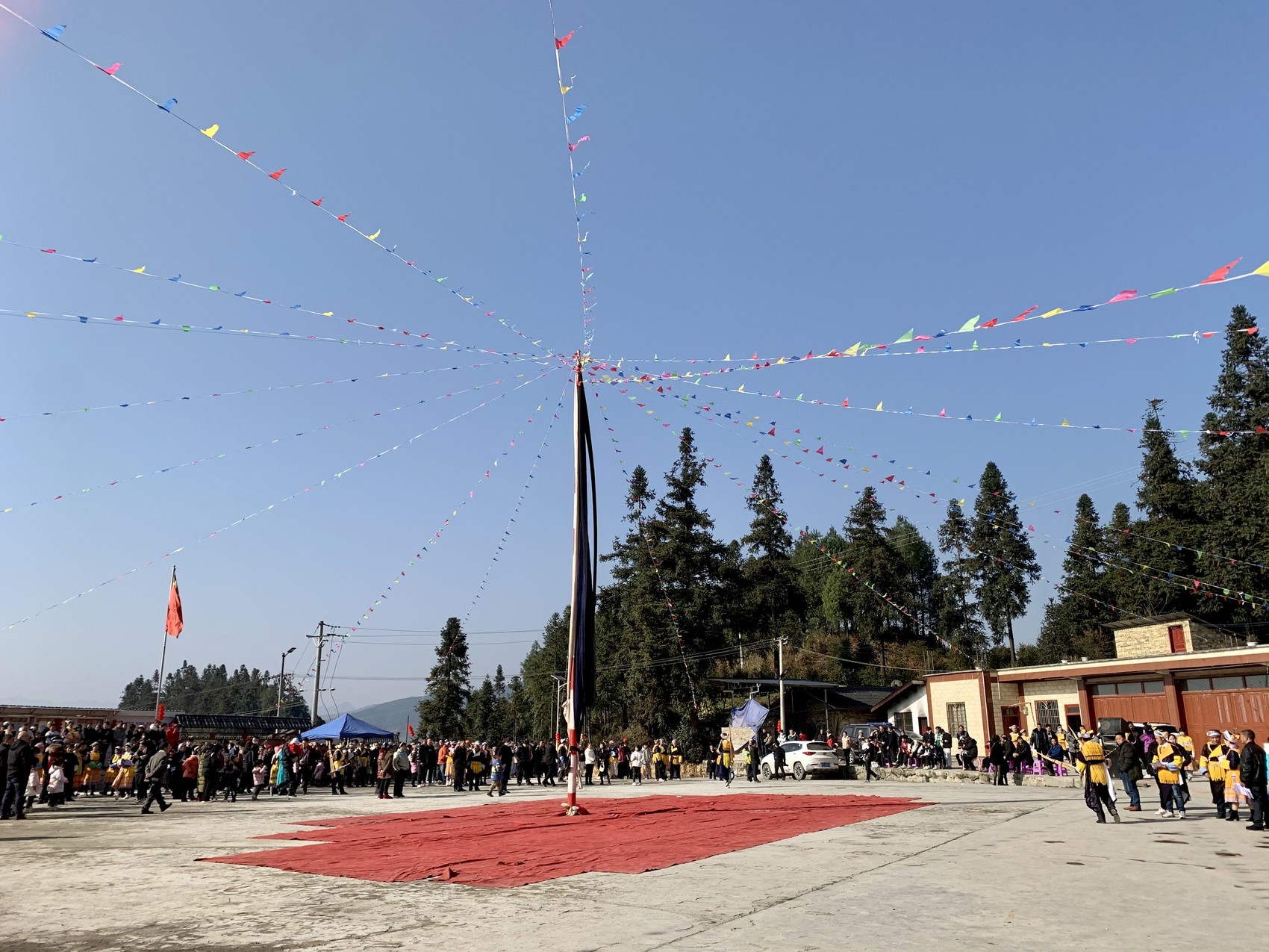 寨和村花山院坝中央立起的花杆。陈思璇摄