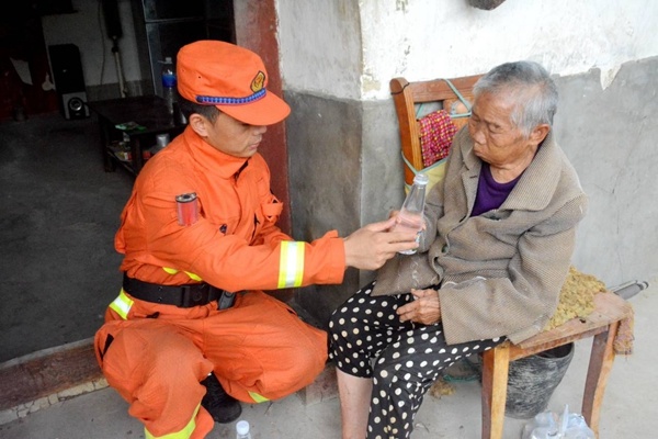 在国庆节旅游景区专项防火行动期间,该大队来到岩神山风景区设森林防火宣传执勤点。在宣传活动时,指战员们得知家住岩神山风景区的王婆婆子女长期在外打工,王婆婆年迈行动不便,生活多有困难。执勤值班员通过与上级领导请示后,在驻地指战员刘玉祥的带领下前往老人家中与老人家唠唠家常、帮忙干干农活。随行的卫生员给老人检查身体健康情况,并赠送一些常备的药品,就像老人的子女一样,让王婆婆在节假期间享受到亲属的陪伴。