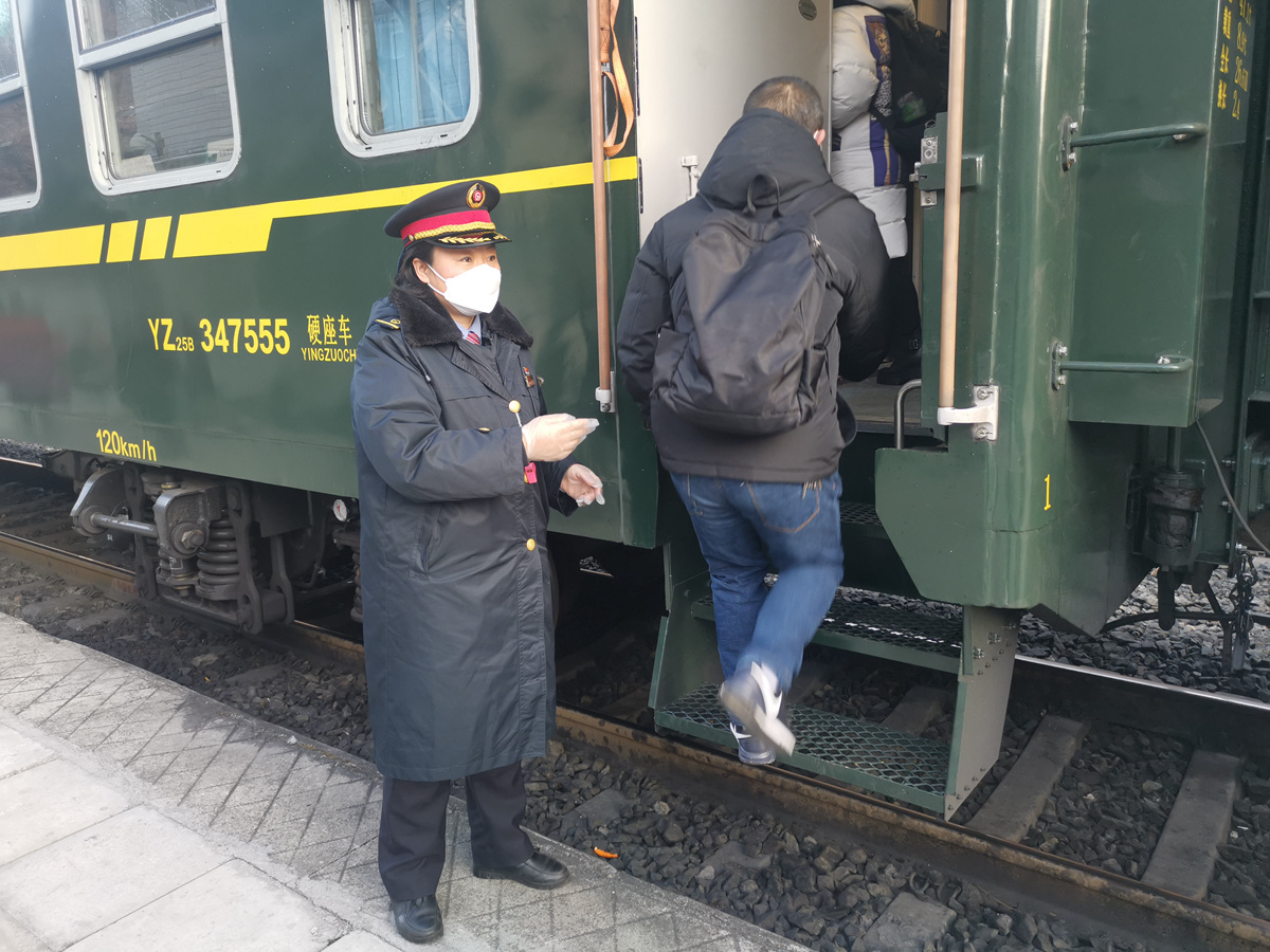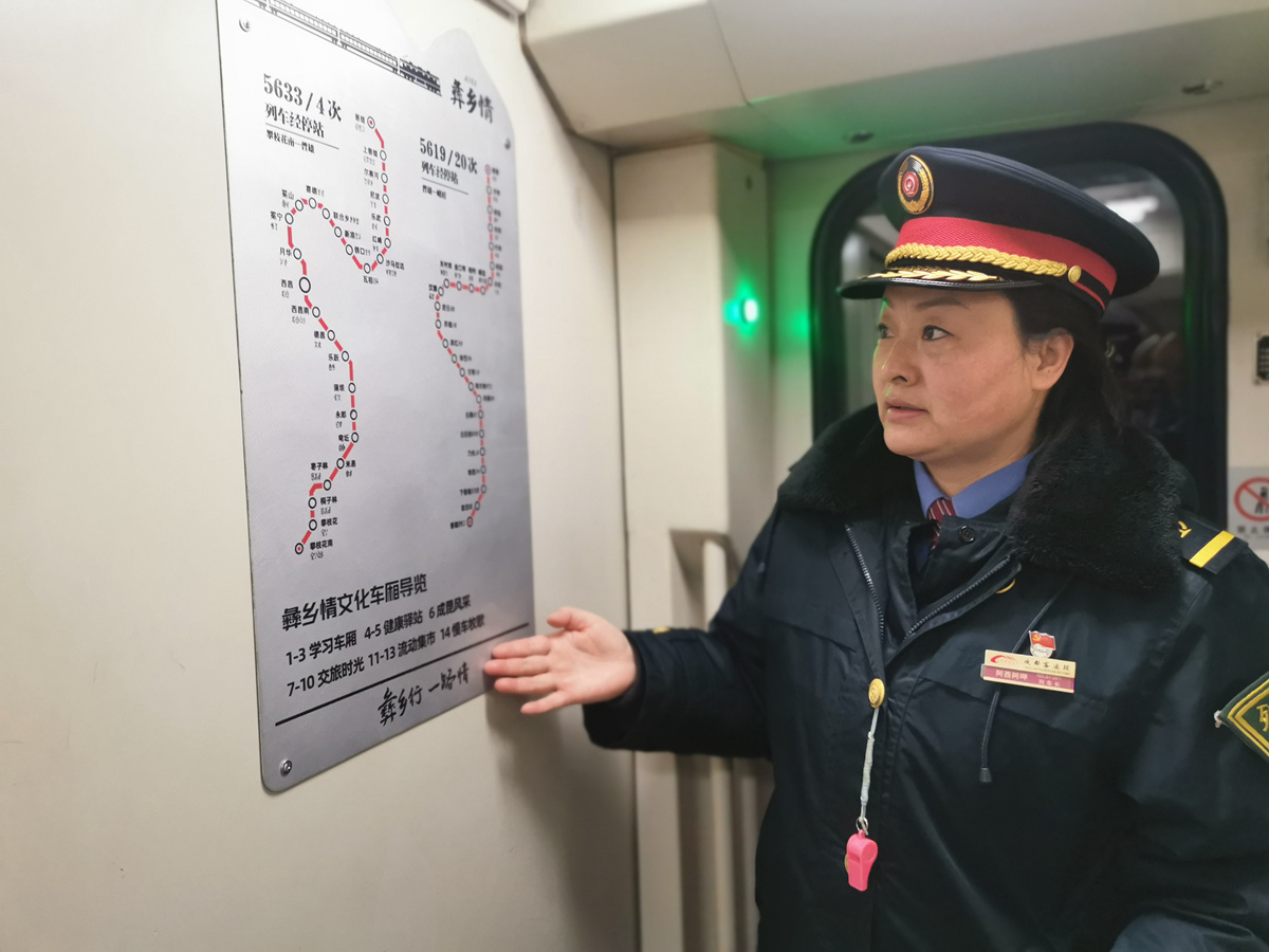 1月29日,普雄站到攀枝花南站的5633次列车7:10发车,6:50开始检票。作为列车长的阿西阿呷要在6:20前到列车上做系列准备工作:检查车体车控,指挥列车员打扫卫生,一层层理顺窗帘,挨着擦凳子,“要做到窗明几净。”等做完这些,阿西阿呷环视一周,赶紧急走两步到列车门外,迎接旅客上车。