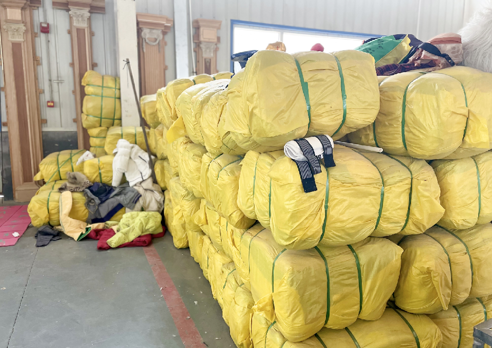 2022年年末,记者采访到成都龙泉驿区的吴老板,他正忙着嘱咐手下的人再收几批旧衣,并赶在春节前打包好运往广州。在那里,有一个他的老客户会对衣服进行处理,并于广州港出海。