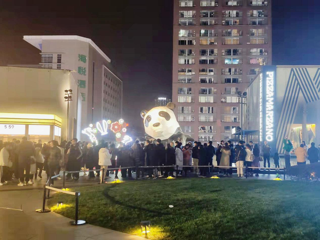 成都IFS“地标熊猫I AM HERE”前排起了拍照打卡的长队。成都IFS供图
