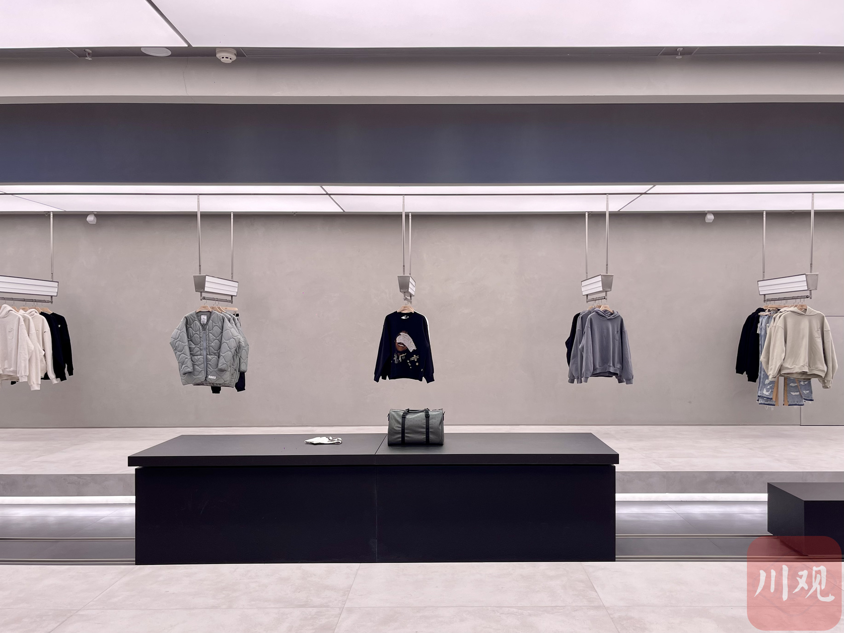 钟先生告诉记者,观影之前,他们一家在楼下还逛了一番——年轻时尚的装修风格之下,众多国潮旗舰店、成都首店扎堆于此。“让人印象深刻的是,不少门店有数百平方米之多,但挂在陈列架上的衣服等商品屈指可数,更多的展陈面积留给了艺术装置。”