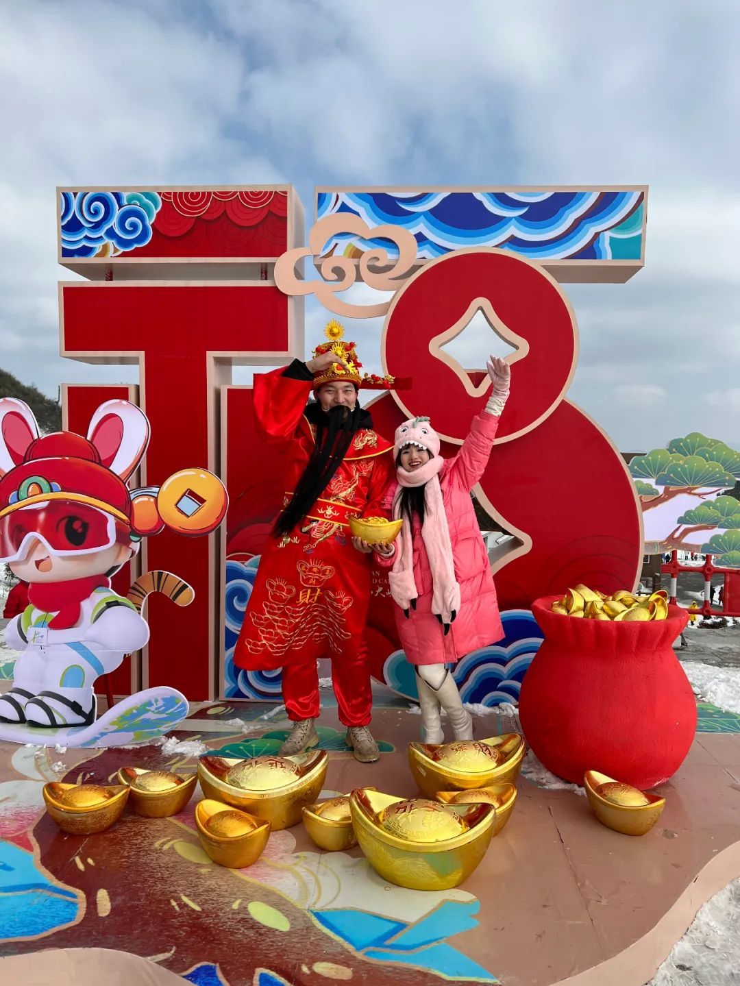 景区内,游客吃土家刨汤宴、看土家迎亲表演,开展抽万元现金红包大奖、新春灯会巨型潮兔打卡、财神送福送金币、大锅汤圆免费吃等系列新春主题活动,让游客过了一个民俗“土味”的中国年。