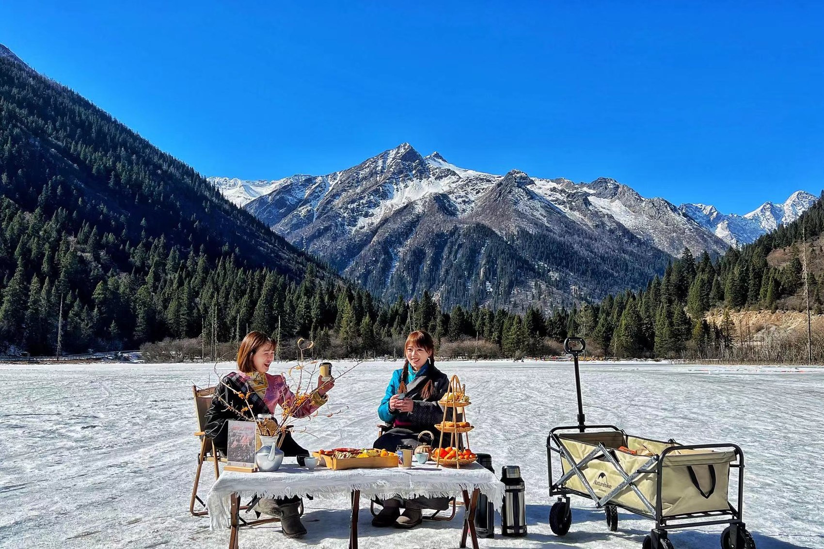 随着冰雪运动的火热,冰雪旅游景区也在不断探索更多新玩法,雪上火锅、雪地围炉等逐渐兴起。1月31日,达古冰川推出藏民俗实景剧本游《跨越达古冰川的等待》,邀请游客一起体验冰雪的独特魅力。