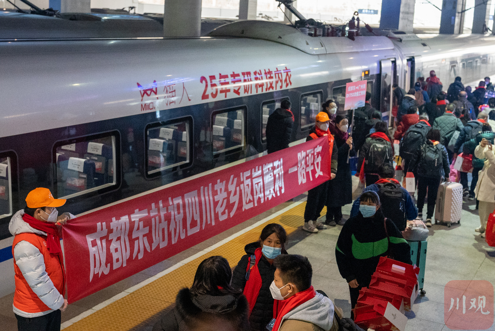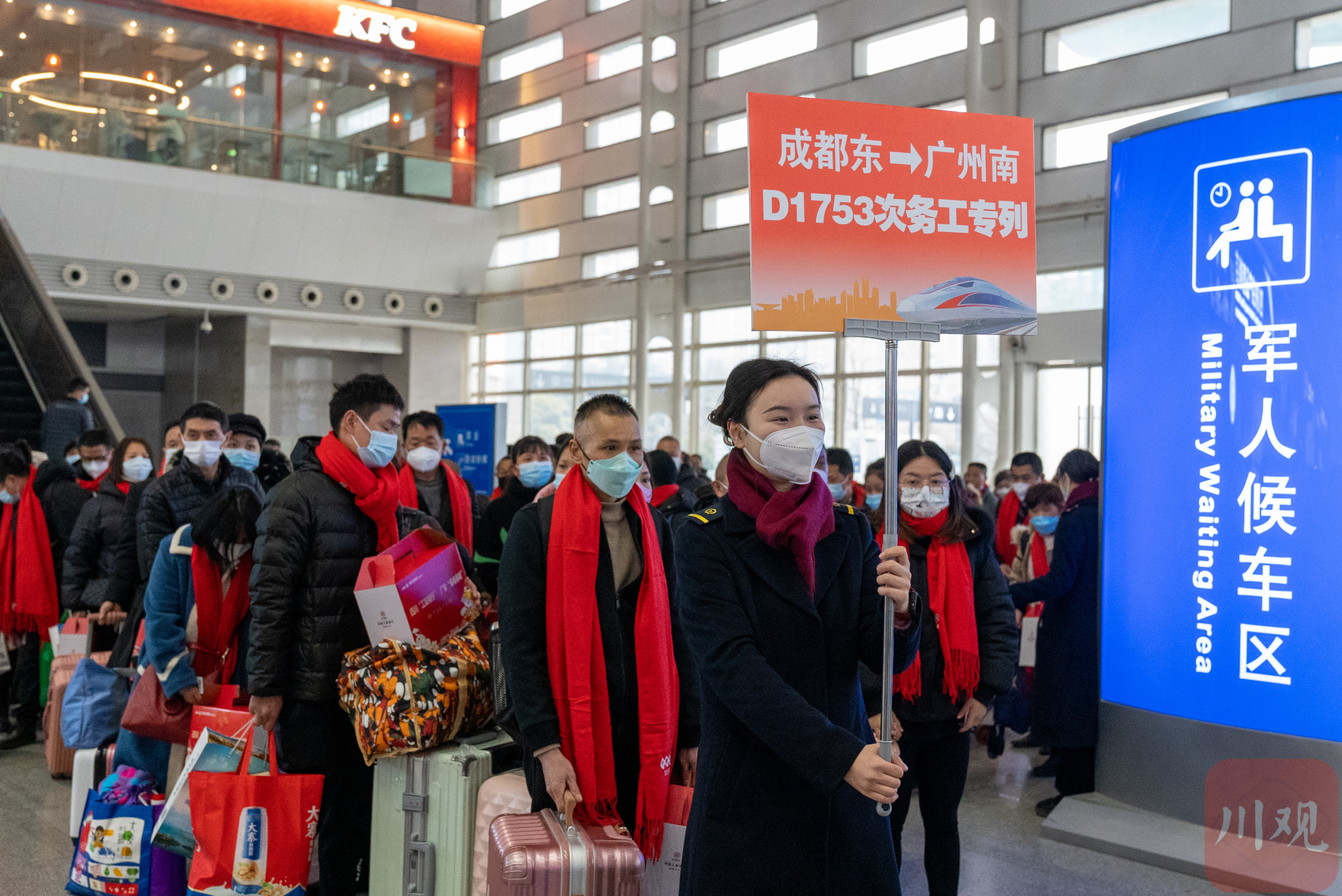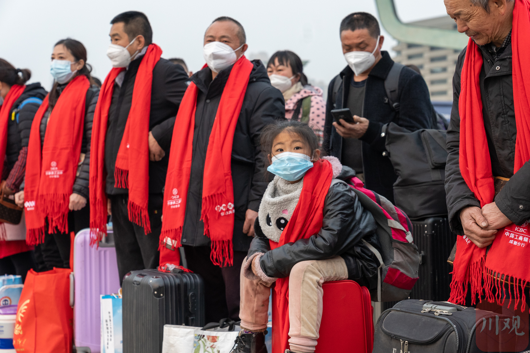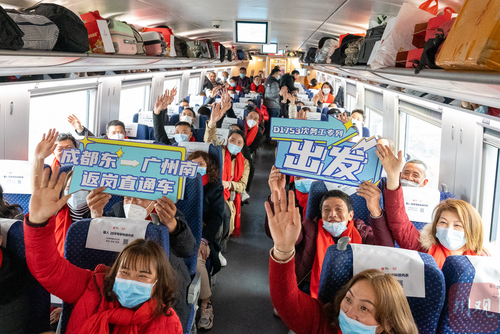 2月1日上午,四川春节后首趟省际劳务协作专列从成都东站出发,600余名川籍农民工乘坐这趟免费专列,赴广东返岗复工。