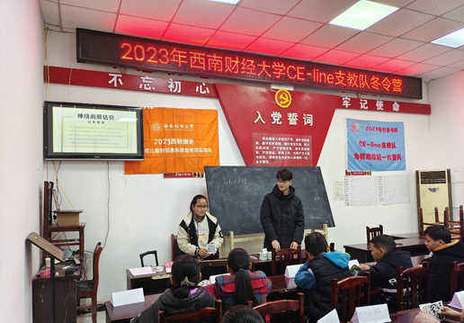 西南财经大学工商管理学院工商管理专业的杨景茹和她的同学从成都回到家乡贵阳,开展青少年财经教育,“我很高兴能给这群小伙伴上一堂生动的财经教育课,在他们身上我看见了蓬勃的生机与活力。”会计学院会计学专业的易书欣则参加了学校朗目支教社团举办的2023“云端冬令营”线上支教活动,为三四年级的小朋友们授课,自己也提升了不少。