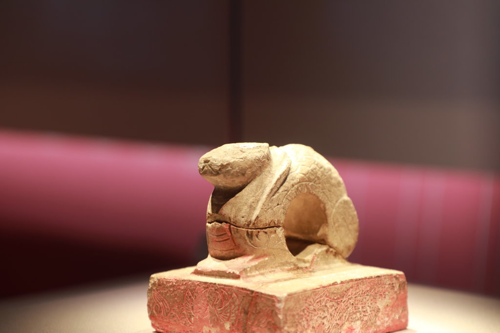 即使贵为皇帝,也不乏以生肖兔装点重要物品的举动。前蜀皇帝王建的兔首谥宝,在本次展览中作为重点文物进行展出。