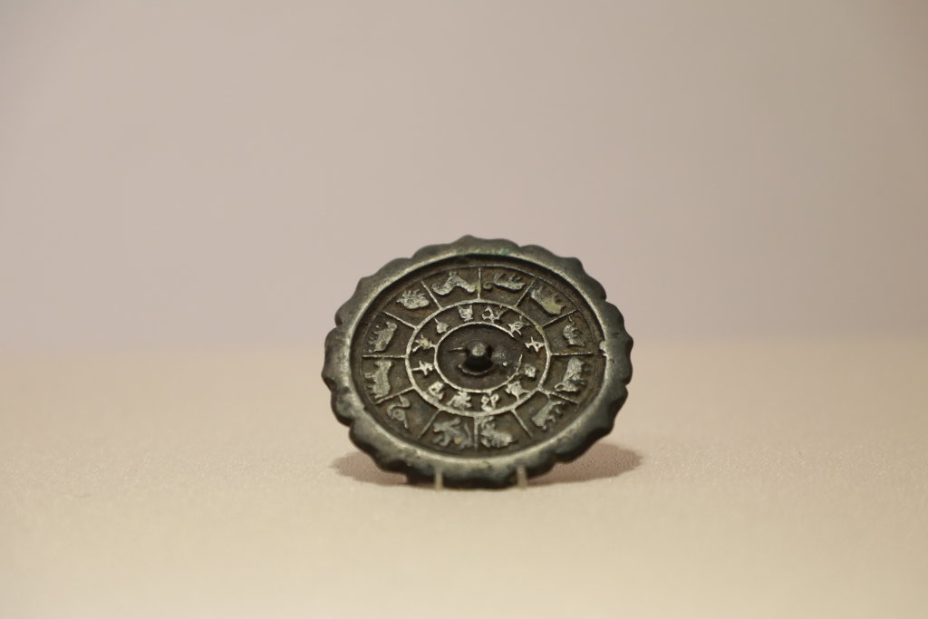 此次展览,兔子作为生肖出现在了大量文物中。四川博物院馆藏清代文物十二生肖双面纹玉圈,在白玉圆环上进行了双面纹饰。一面凸雕子丑寅卯等十二时辰,另一面浮雕了十二属相。展览中的多枚铜镜,内圈刻八卦纹、外圈刻十二生肖已成为标配,栩栩如生的动物图案为铜镜增色不少。