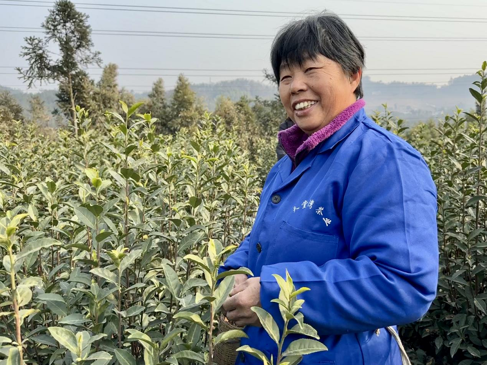 茶农肖泽分笑着向记者介绍她的茶园。