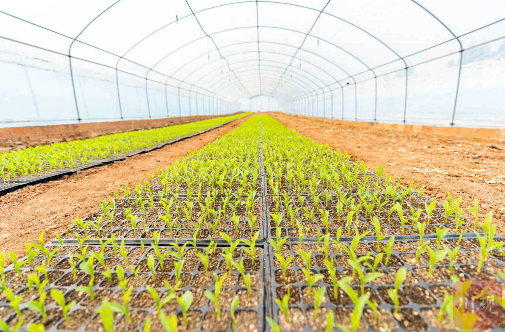 育苗大棚内的玉米苗