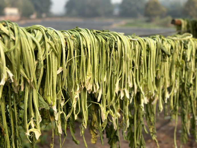 晾晒中的芽菜叶片。