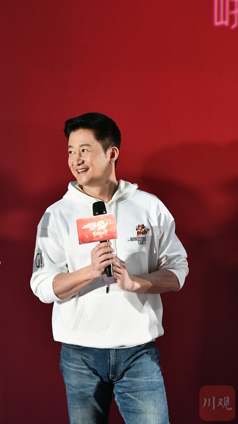 在映后见面会上,导演郭帆,主演吴京、王智等主创人员惊喜亮相,包括一线科研工作者、出版人等在内的重磅嘉宾,也现场分享了观影心得,为影片送上诚挚祝福。这部影片不仅有拯救人类的宏大情节,也有精彩的特效画面,尤其是片中太空电梯起飞和降落的场面,给观众带来巨大的视觉震撼。而这部高耸入云的“太空电梯”,创作团队来自于成都本土。经过一年多的精心制作,太空电梯的特效场景堪称壮观。而面对观众现场发问“第三部能否加入一点四川方言或者一些四川元素”时,郭帆爽快地表示“没问题。”据他介绍,电影最初的概念图中,其实就有在失重状态下打麻将的场景。