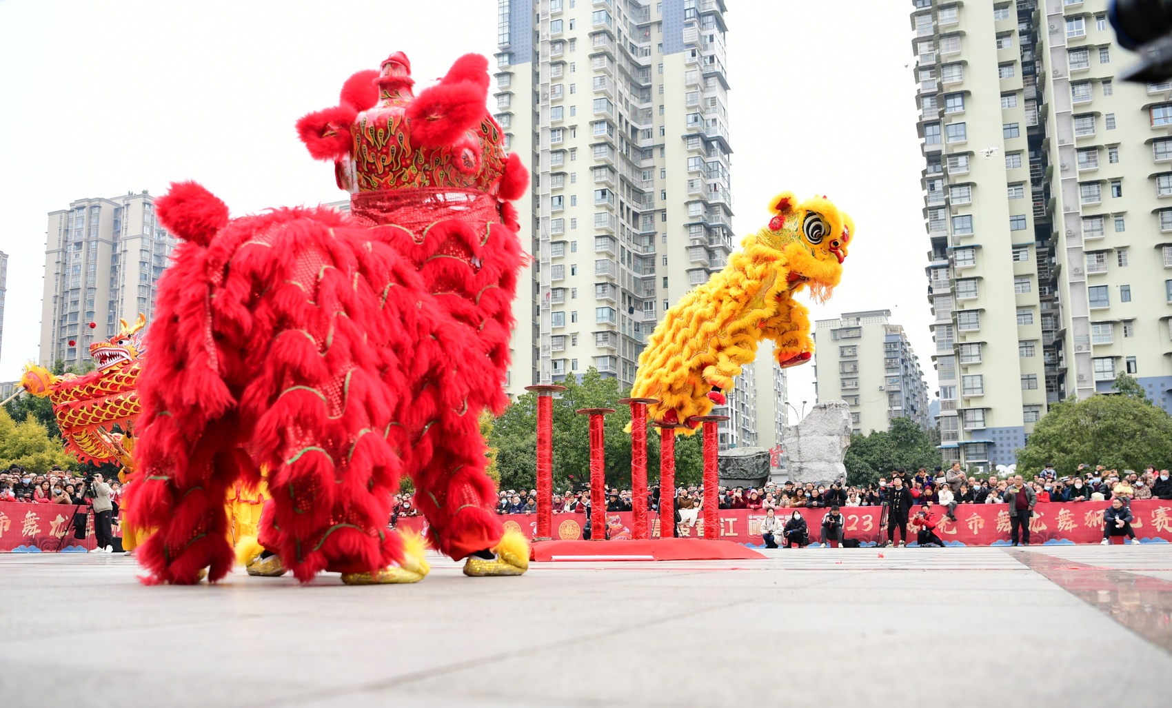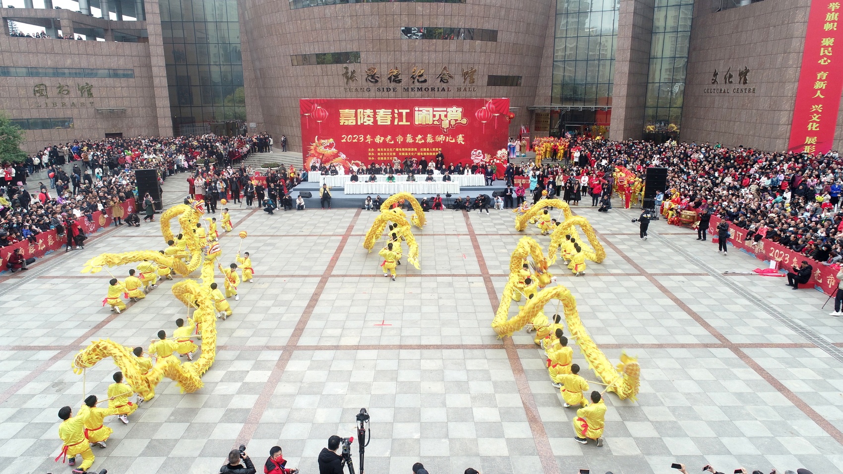 在阵阵欢呼声中,来自南充市三区六县的舞龙舞狮队依次登场。