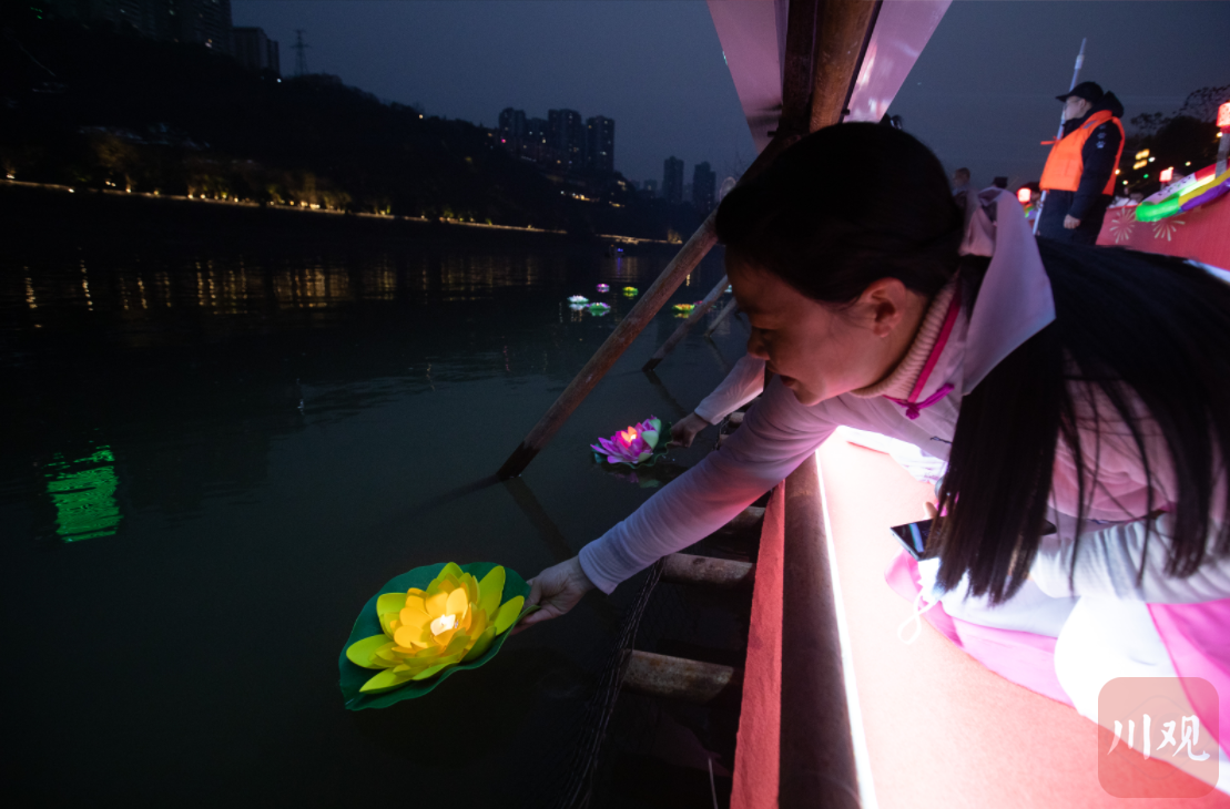 2月5日晚,泸州市2023年“玉兔迎新春·祈愿幸福年”元宵放灯节活动在龙马潭区双桂广场举行,活动以还原古代灯会放河灯为主要仪式,数万市民聚集沱江岸边,将河灯放入沱江放灯区域,寄托新年祝福。
