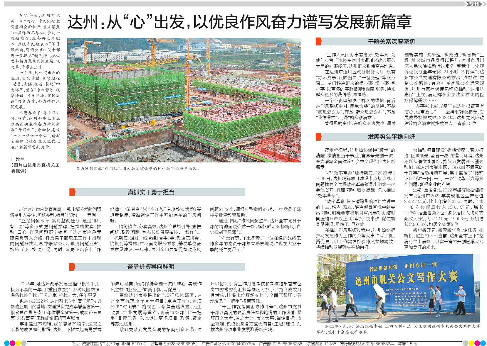 也是在2022年,达州引来6个“百亿级”先进制造业项目的落地,交通投资完成率居全省第一,粮食总产量连续10年位居全省第一,成功跻身国家“东数西算”工程成渝枢纽节点城市。