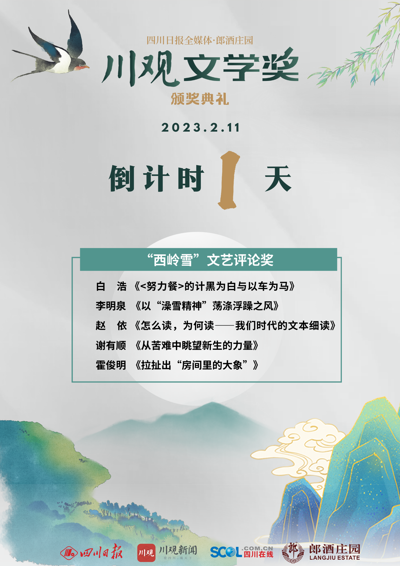本次“西岭雪”文艺评论奖集中反映了2021年代表性文艺评论家的理论言说,或为在宏观上深刻把握,或为在细节上浅吟低唱。无论是文学作品还是艺术对象,无论是细读研究还是语言制度重建,“西岭雪”文艺评论都有着启人心智的思想力量,是那么的各美其美,又是那么的美人之美。