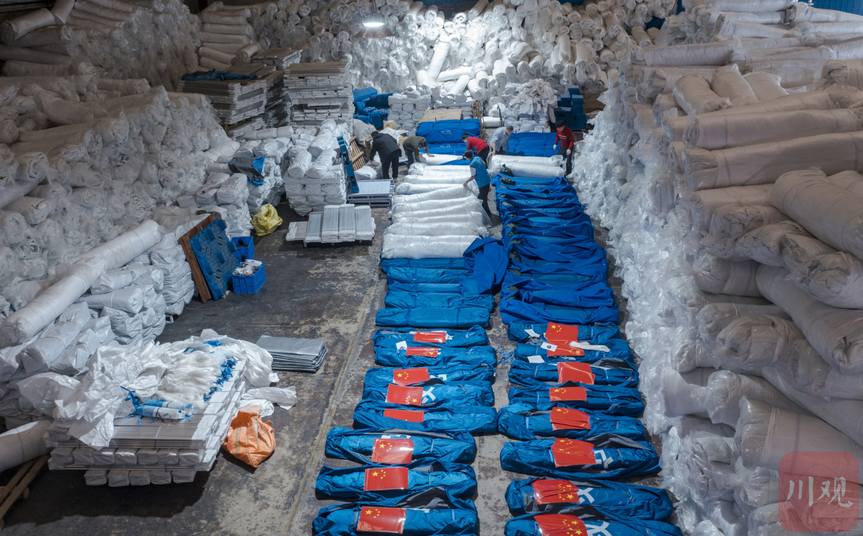 “两天前接到任务,我们公司24小时‘人停机不停’,紧急赶制防寒保暖帐篷。”2月10日15时许,川观新闻记者来到成都市鑫宏威野营装备器材有限责任公司,总经理刘新伟正和工人一起打包即将发运的帐篷。“保质保量,还要抢速度。”刘新伟将地铺、篷体、装杆件打包后,再将配件包、棉内胆一起装进一体化包装,每个包装袋上都贴上了中国国旗,也印着“救灾专用棉帐篷”的字样。1个多小时的时间里,10余名工人将100顶帐篷全部打包,陆续装上厢式货车。