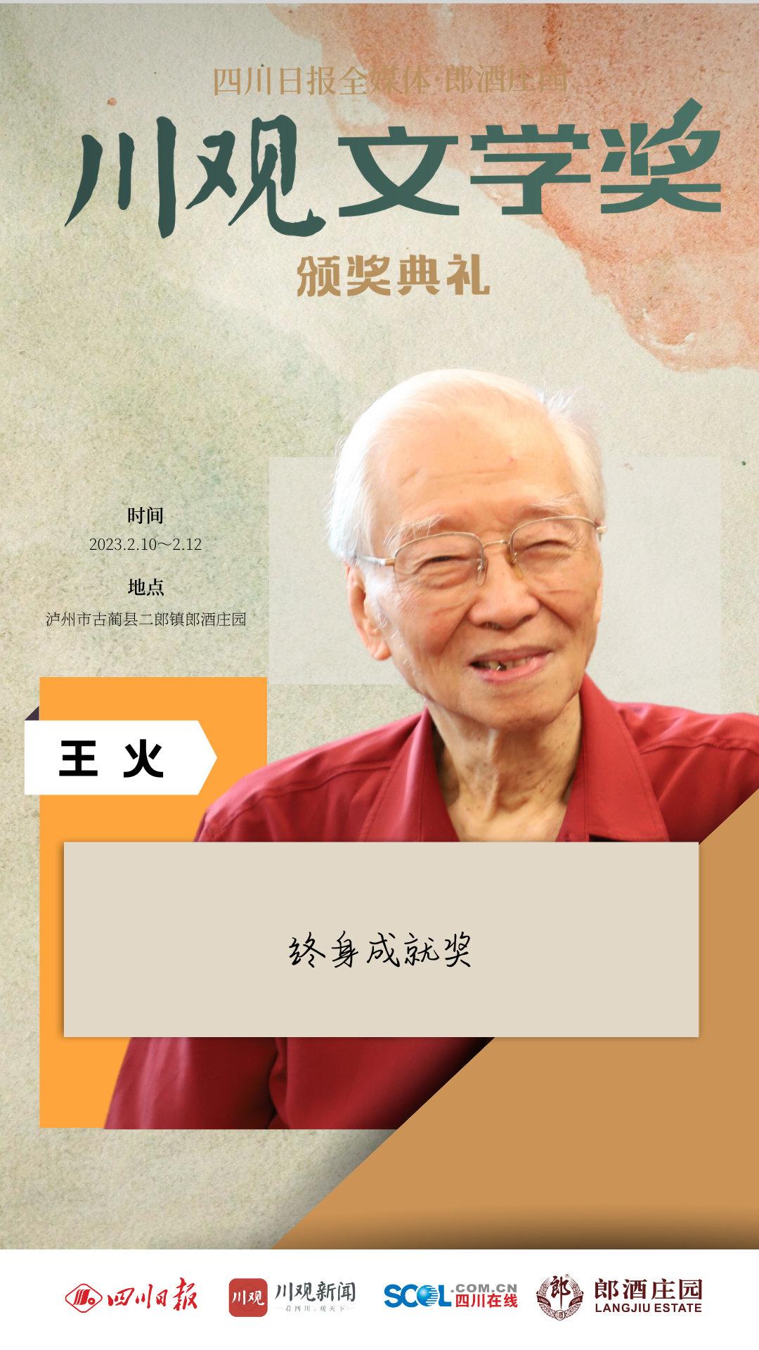 2月11日下午,在川观文学奖(2021年度)颁奖典礼上,王火被授予川观文学奖终身成就奖。