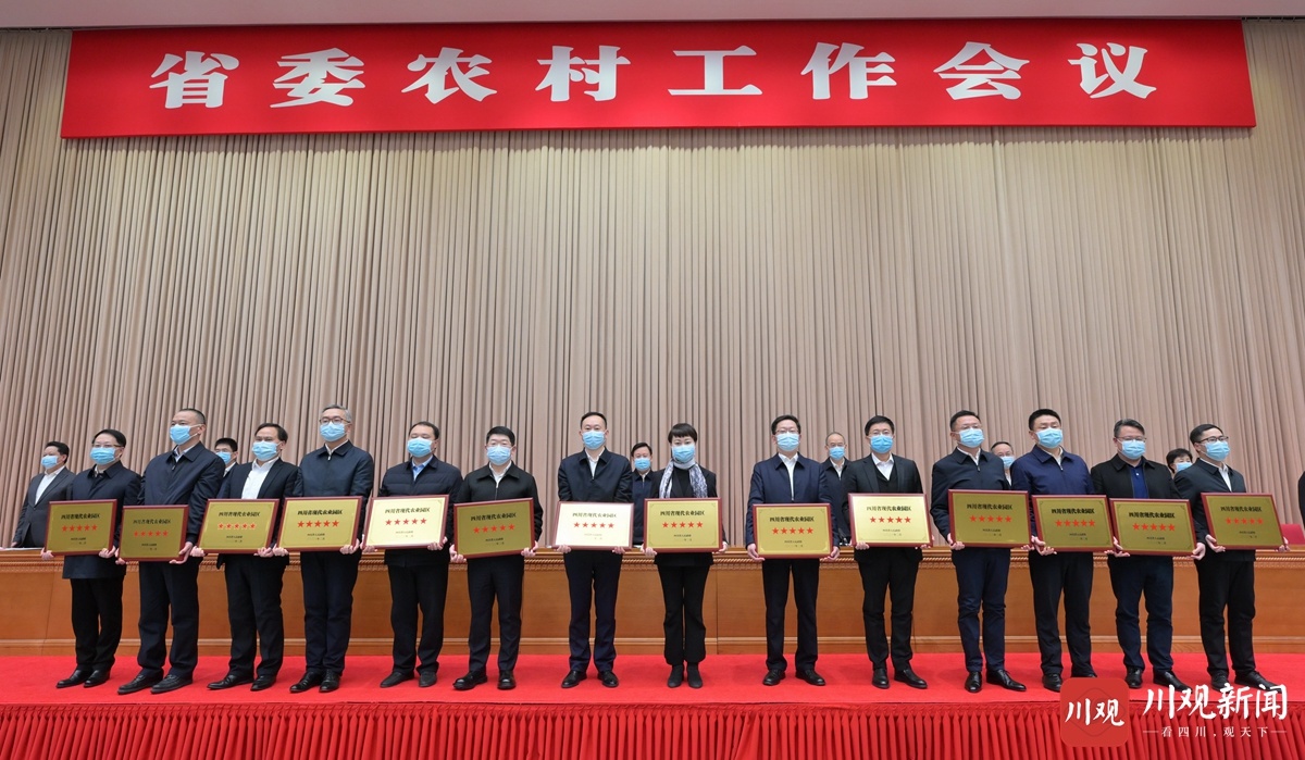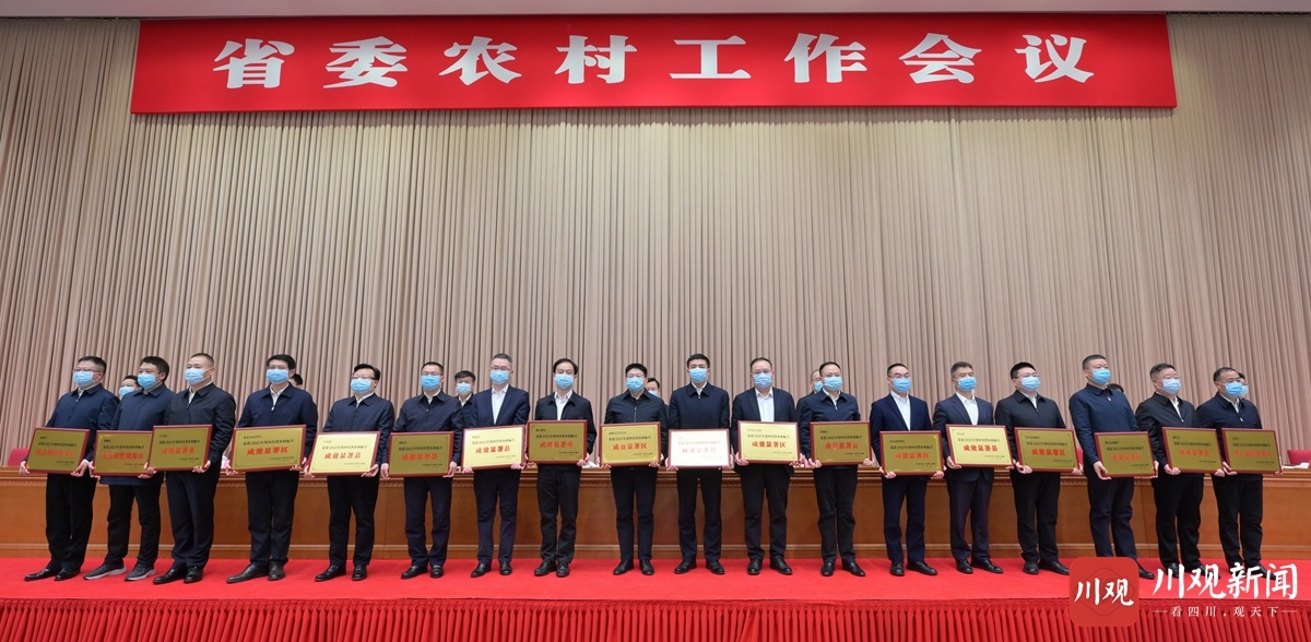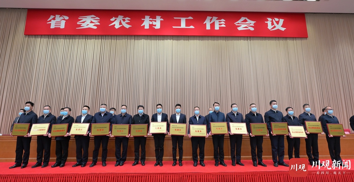 会上,传达了中央农村工作会议精神,宣读了省委、省政府《关于表扬2022年度四川省乡村振兴先进市和先进单位的通报》《关于命名2022年度四川省乡村振兴先进县(市、区)、成效显著县(市、区)、重点帮扶优秀县(市、区)和先进乡镇、示范村、重点帮扶优秀村的决定》和省政府《关于命名2022年度四川省星级现代农业园区的决定》。王晓晖、黄强等省领导向受表扬和新命名的先进代表授牌。