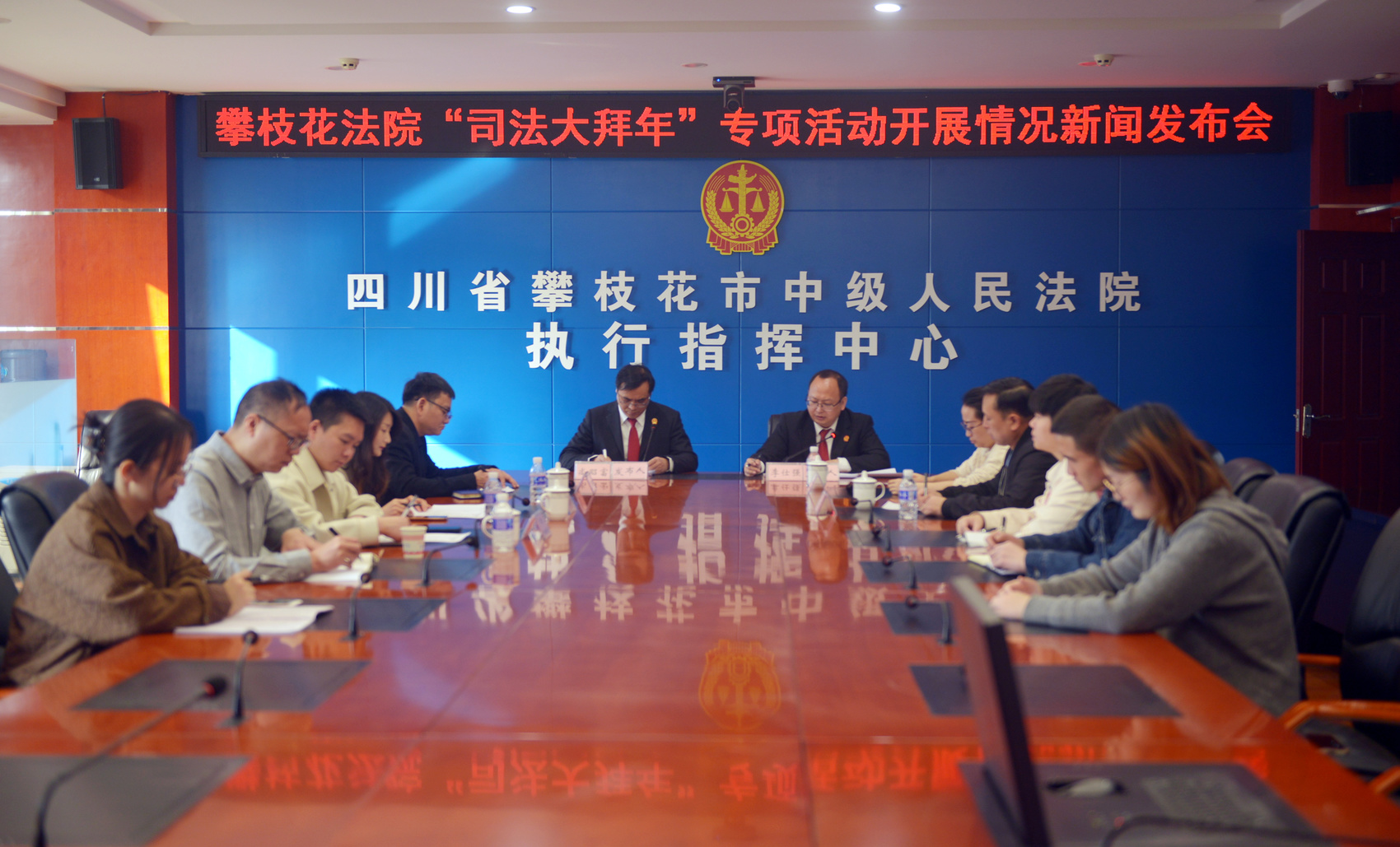 攀枝花市中级人民法院“司法大拜年”专项活动开展情况新闻发布会现场。(攀枝花市中级人民法院供图)