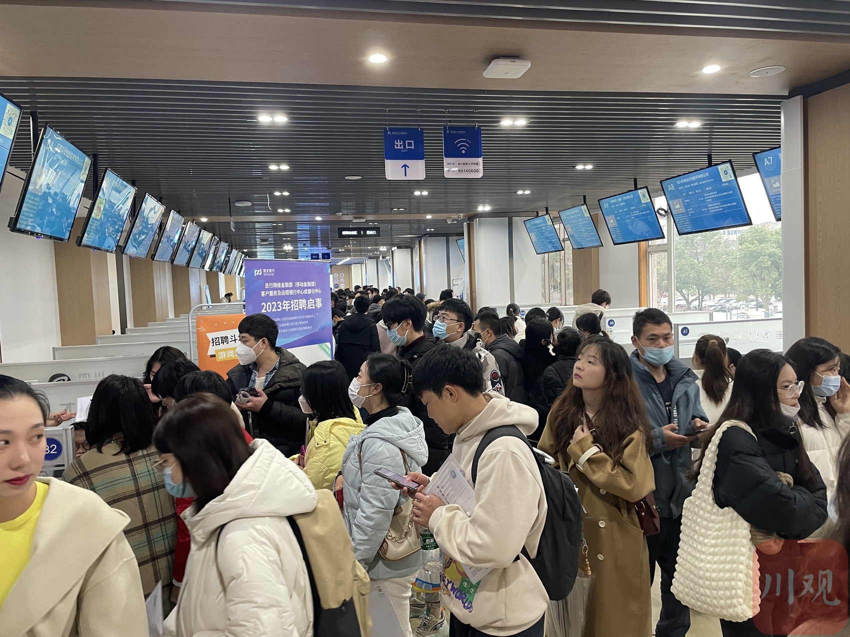 上午10时左右,川观新闻记者来到位于成都市小南街的四川省人才交流中心二楼的招聘会现场,只见大厅内人头攒动,求职者以年轻面孔为主,多个企业的招聘台前面,排起了长队。 “今天入场的招聘企业和求职者人数,均超过了去年同期。”四川省人才交流中心副主任杨尚海介绍,当天的招聘活动以高校毕业生和各类有求职需求的人才为服务对象,共有来自电子信息、装备制造、食品饮料、先进材料、能源化工、数字经济等多个行业领域的166家企业参加,提供岗位数4500余个。