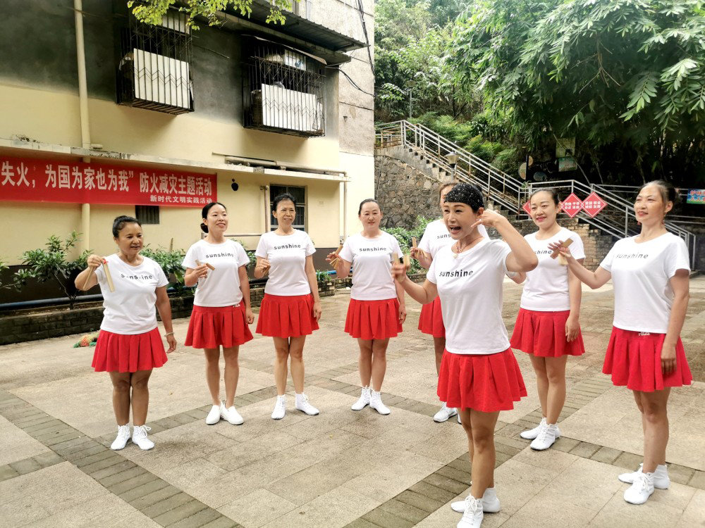 当天卖力表演的10名居民平均年龄55岁,均是社区秋之韵舞蹈队的队员。领头的正是舞蹈队队长隋丽娜,尽管她今年已经62岁,但唱起三句半来,声音格外洪亮。隋丽娜说,社区内有着目前省内最大的凤凰树花海,每年四五月,3万余株凤凰花连片盛开,灿若云霞,吸引了不少外来游客前来赏花,为保护好这一独特的生态资源,今年6月队员们开始策划创作节目,宣传森林草原防灭火知识。