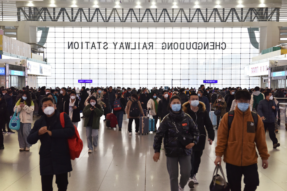 2023年春运,中国铁路成都局送客量比2019年增长3.1%。中国铁路成都局供图
